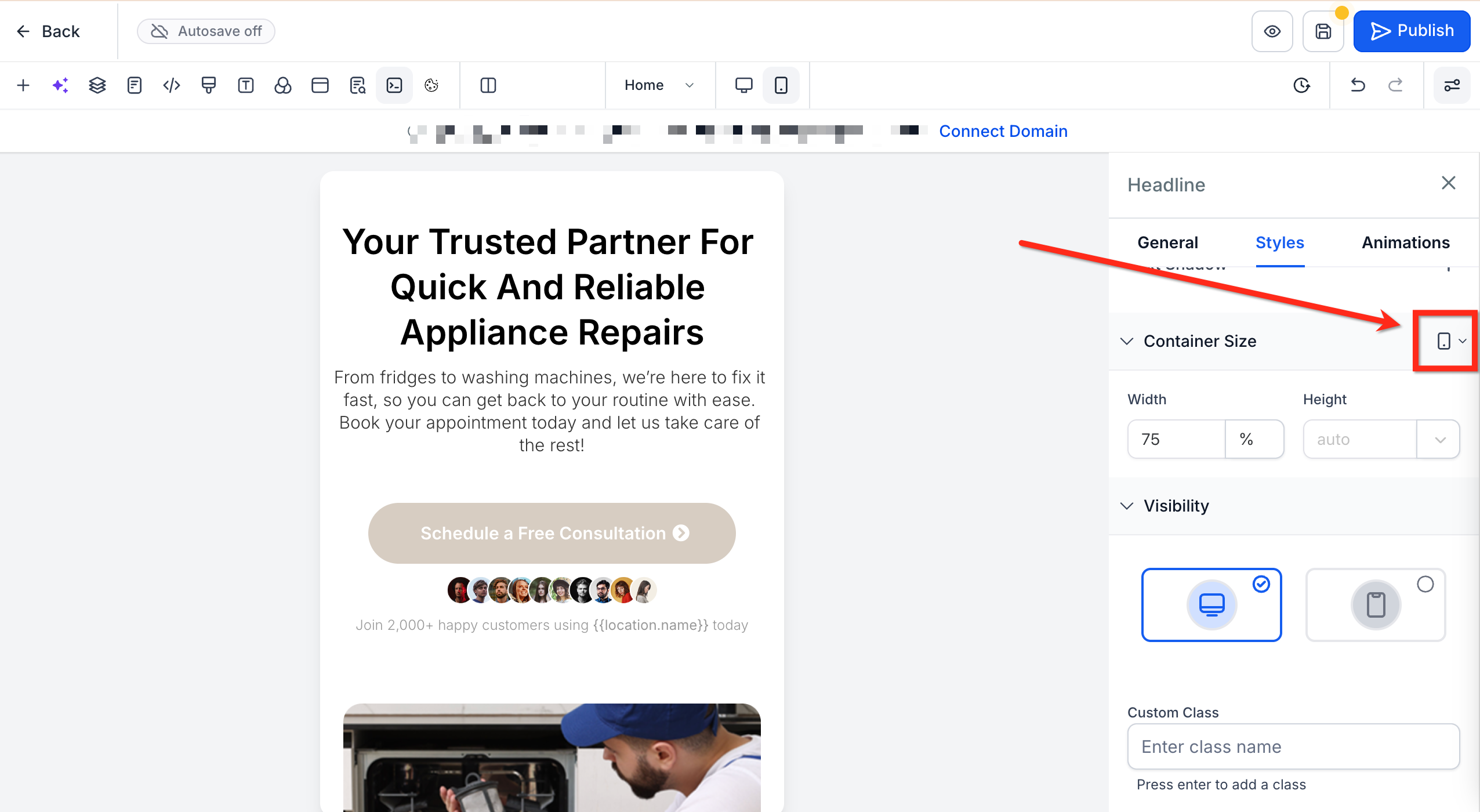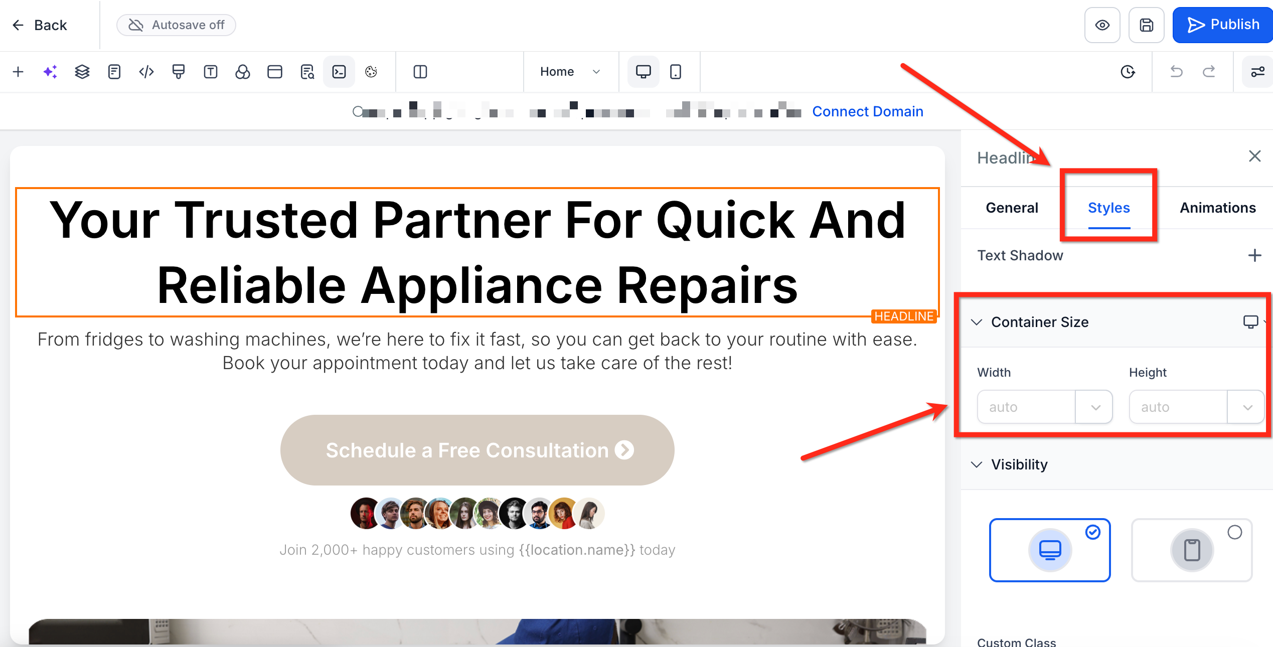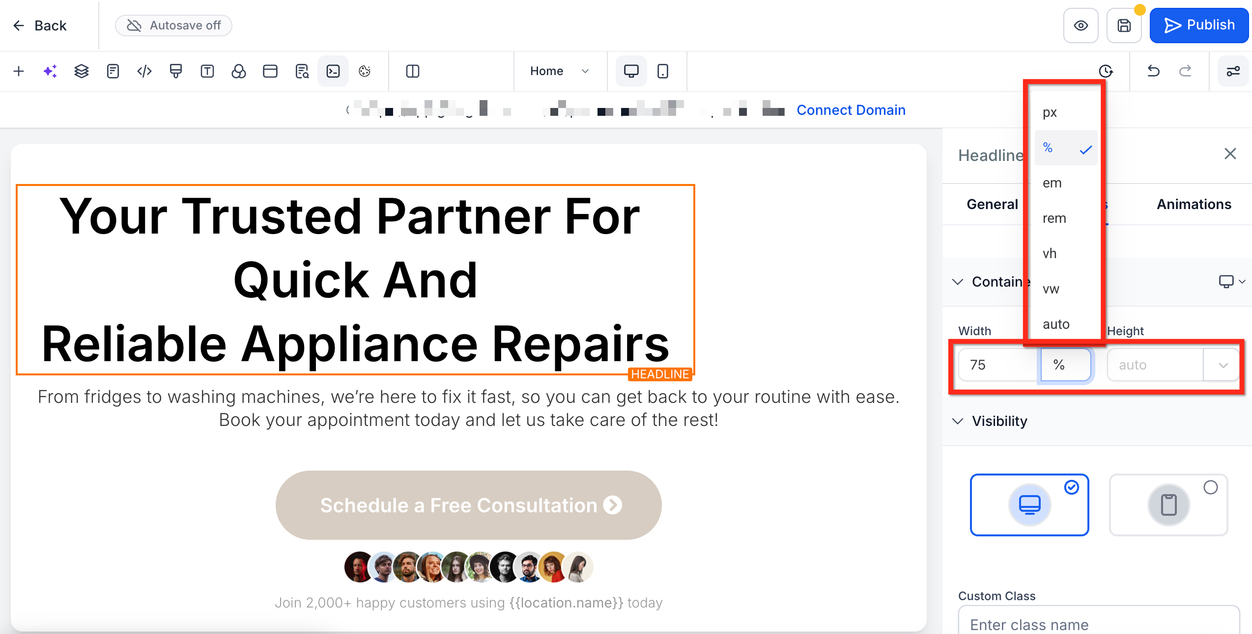 Take precise control of every element’s size in HighLevel’s Page Builder using Container Size. This article will show you how to set custom height and width, pick the right unit, and assign different values for desktop and mobile.