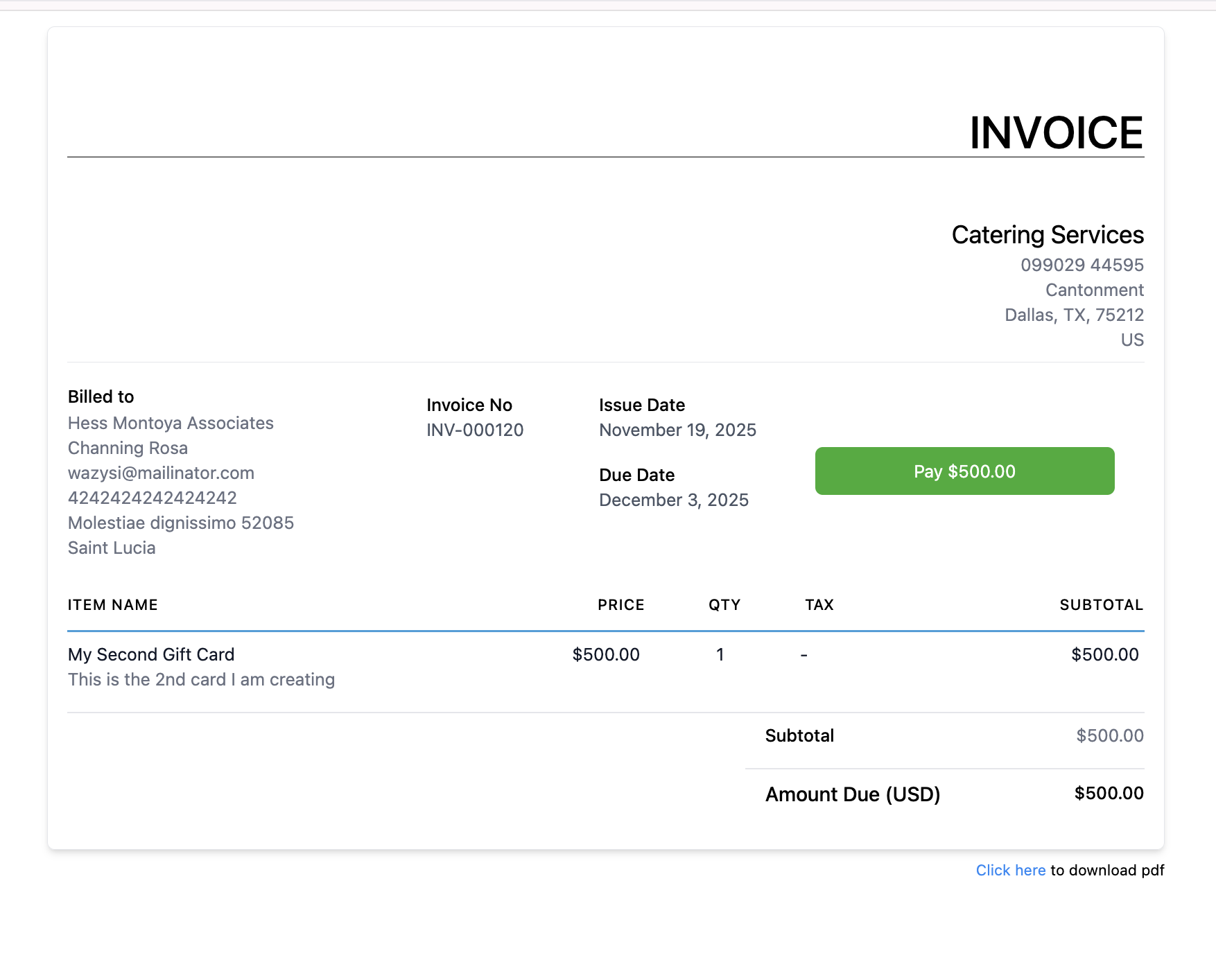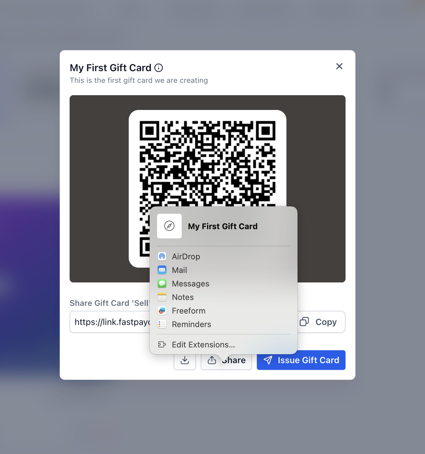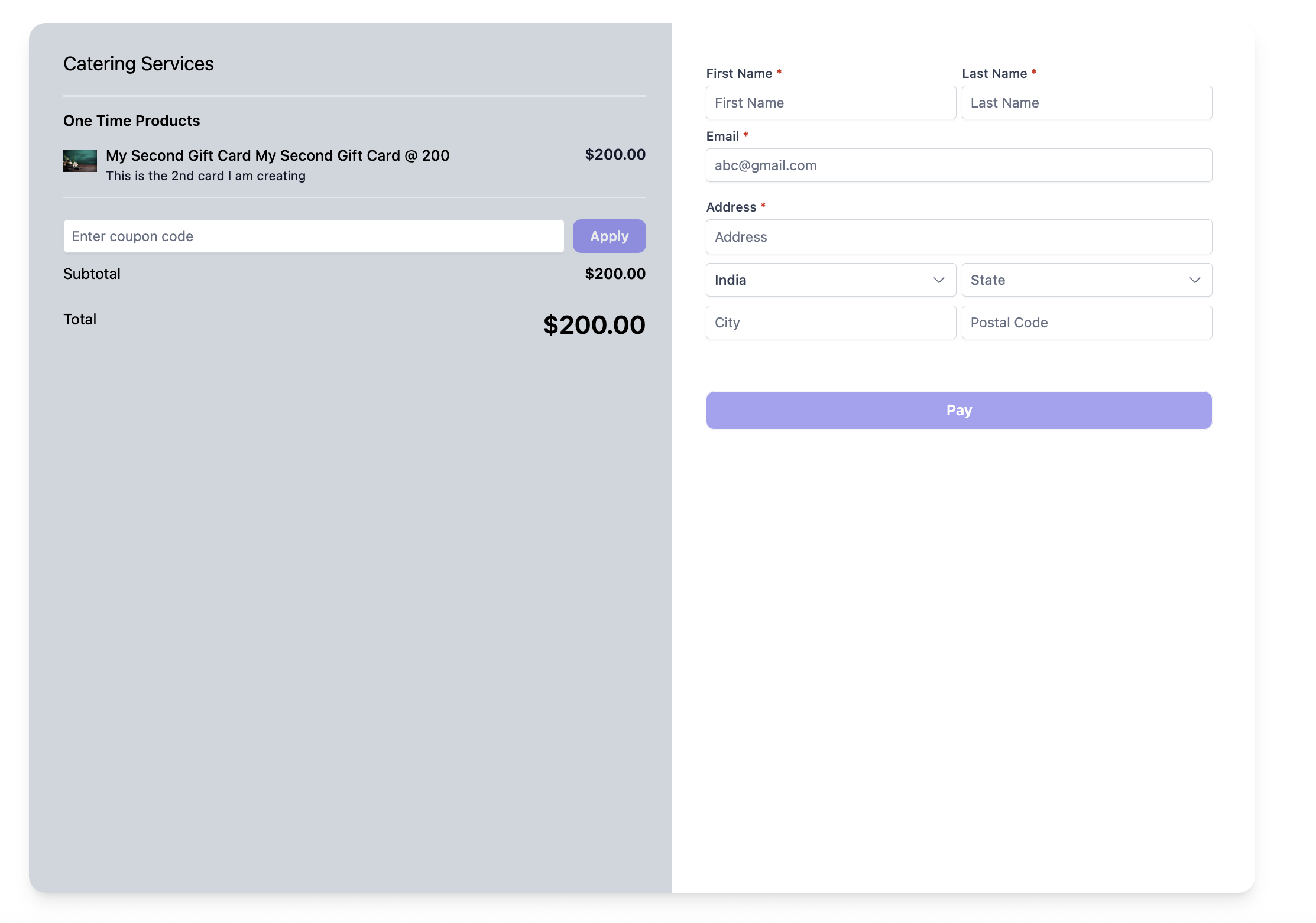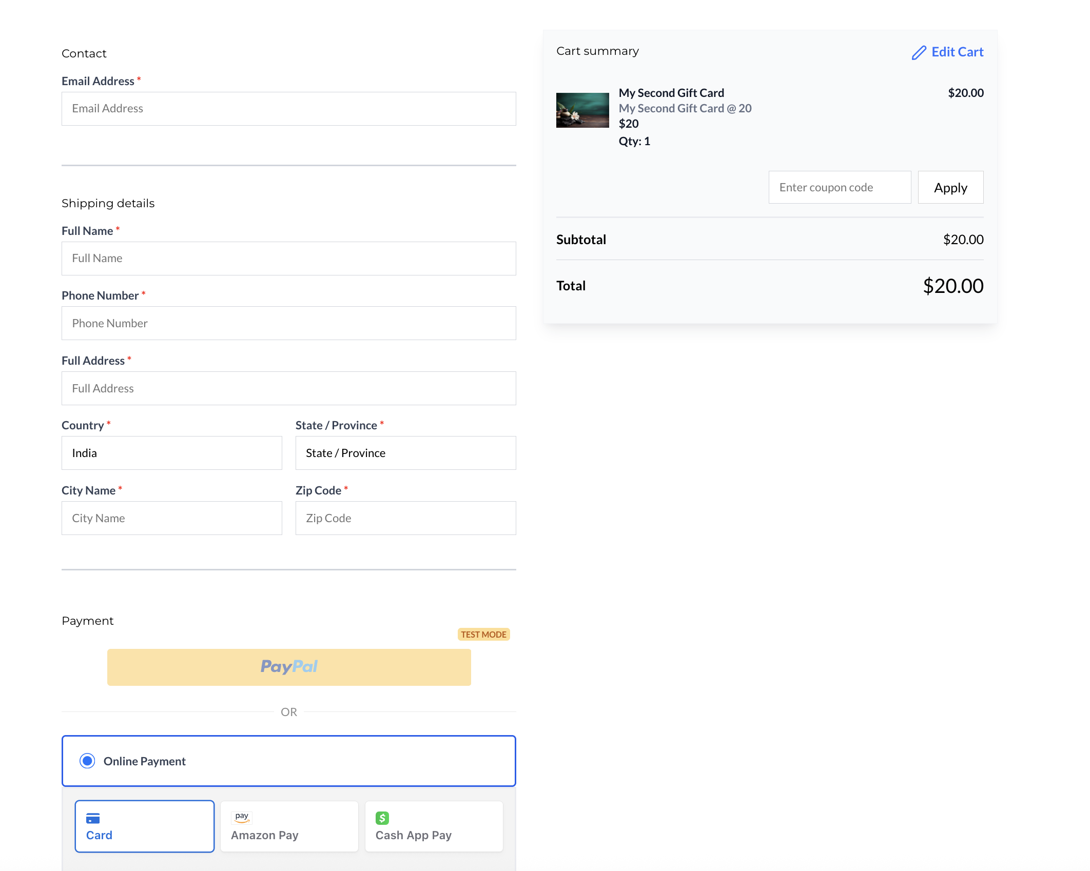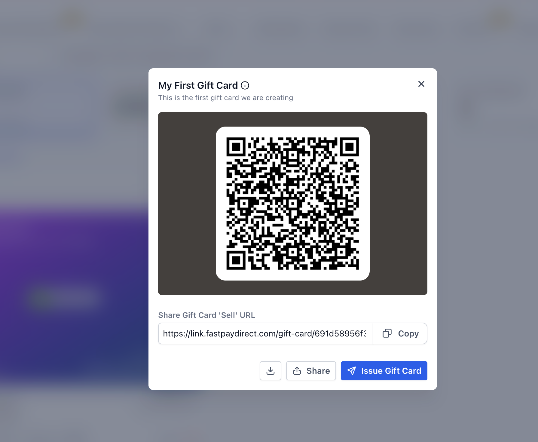 Each Gift Card Product has its own unique checkout link in both Test and Live modes.