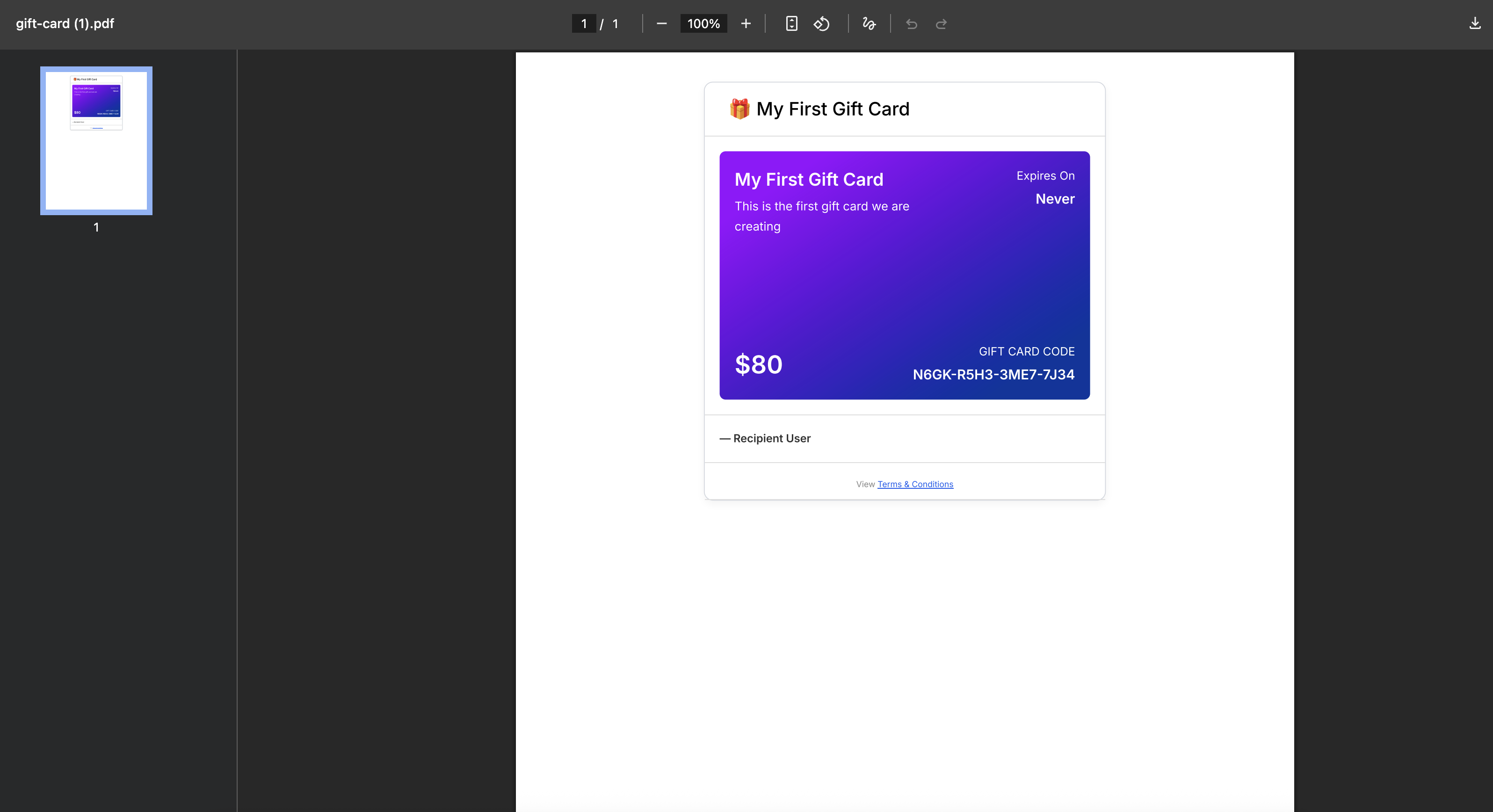 Gift Cards can be sold as a product—either through their own checkout or by adding them to any of your existing selling workflows. When a customer buys a gift card, a Gift Card Order is created and the gift card is delivered based on the delivery configuration chosen at checkout.