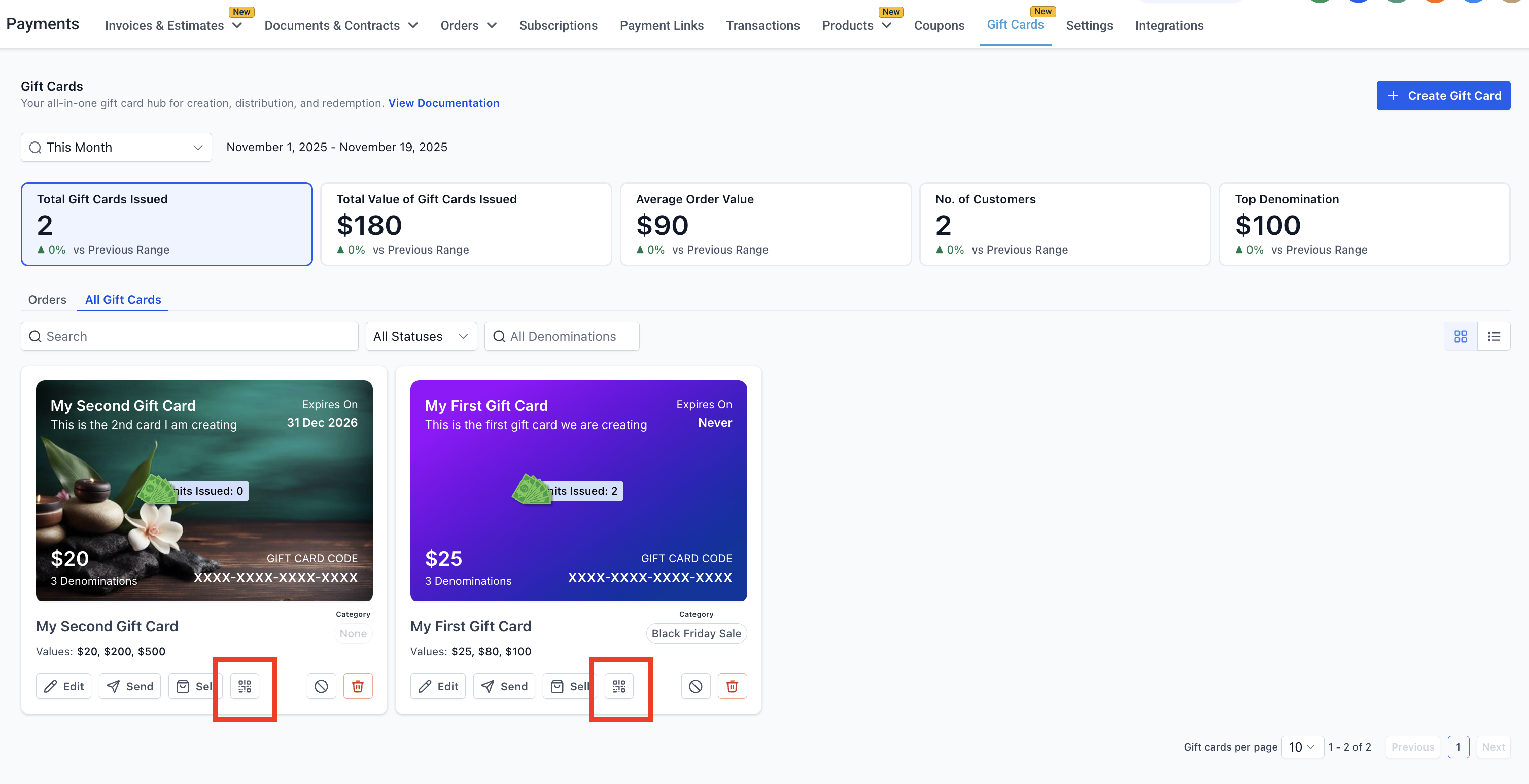 Gift Cards can be sold in multiple ways—through a dedicated checkout link, embedded checkout, QR codes, or by adding Gift Card Products to existing checkouts such as Funnels, Forms, Payment Links, Invoices, Stores, and Calendars (where products are supported).
