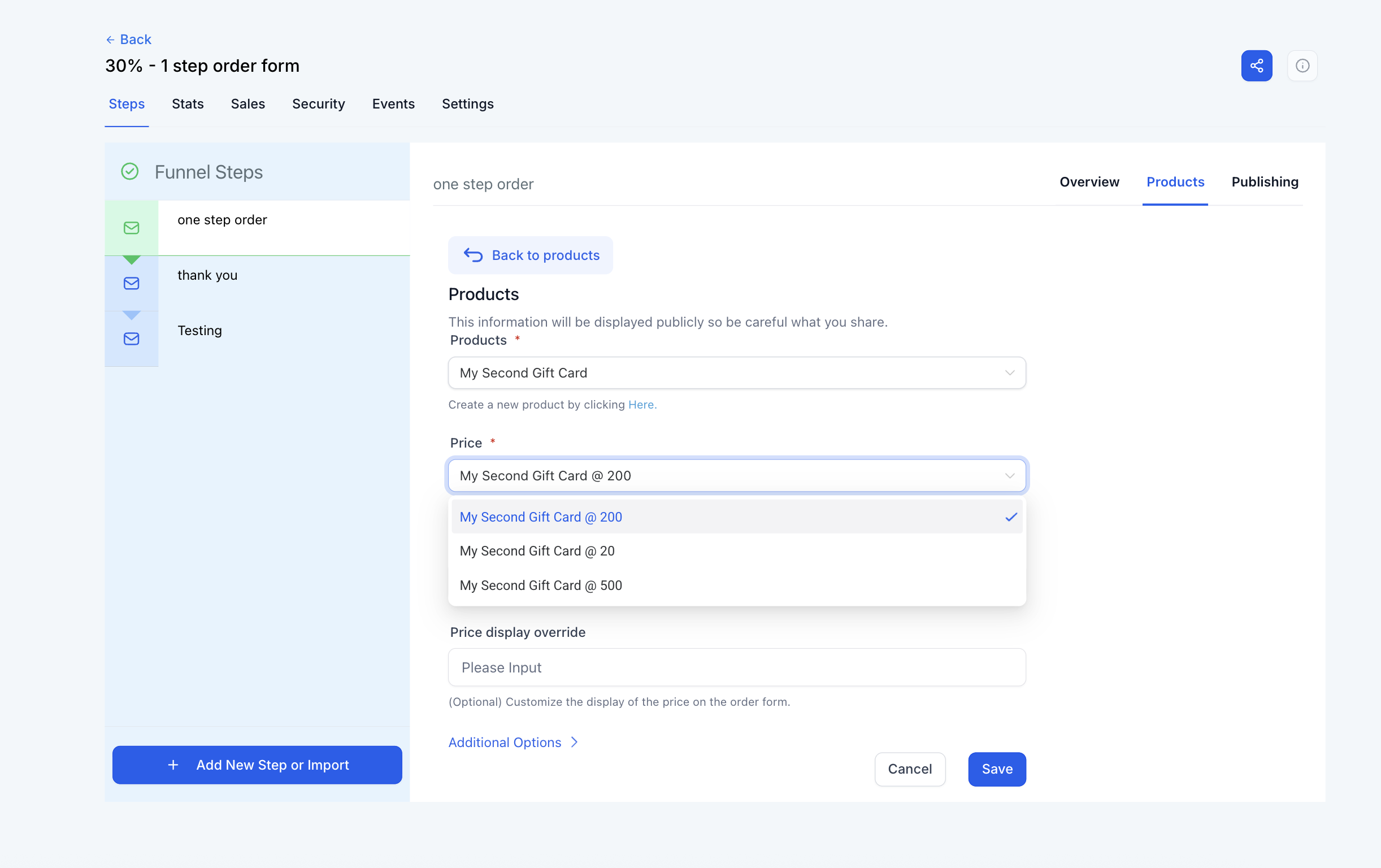 Customers buying from this funnel will receive the gift card automatically after successful payment on their email address entered on the Funnel