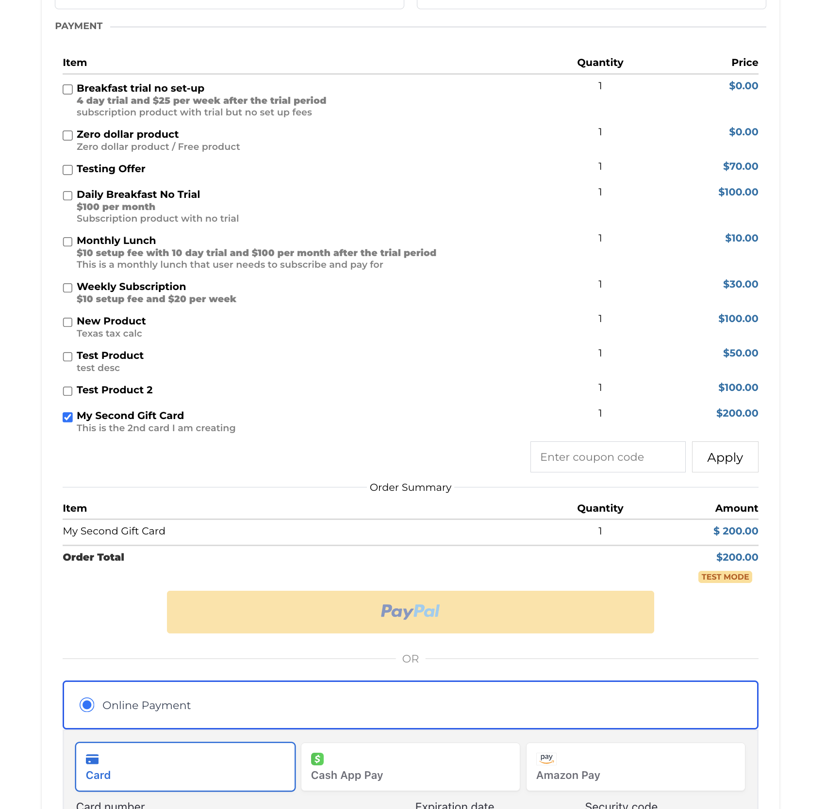 If you add gift cards to a test-mode funnel, customers will receive test gift cards only.