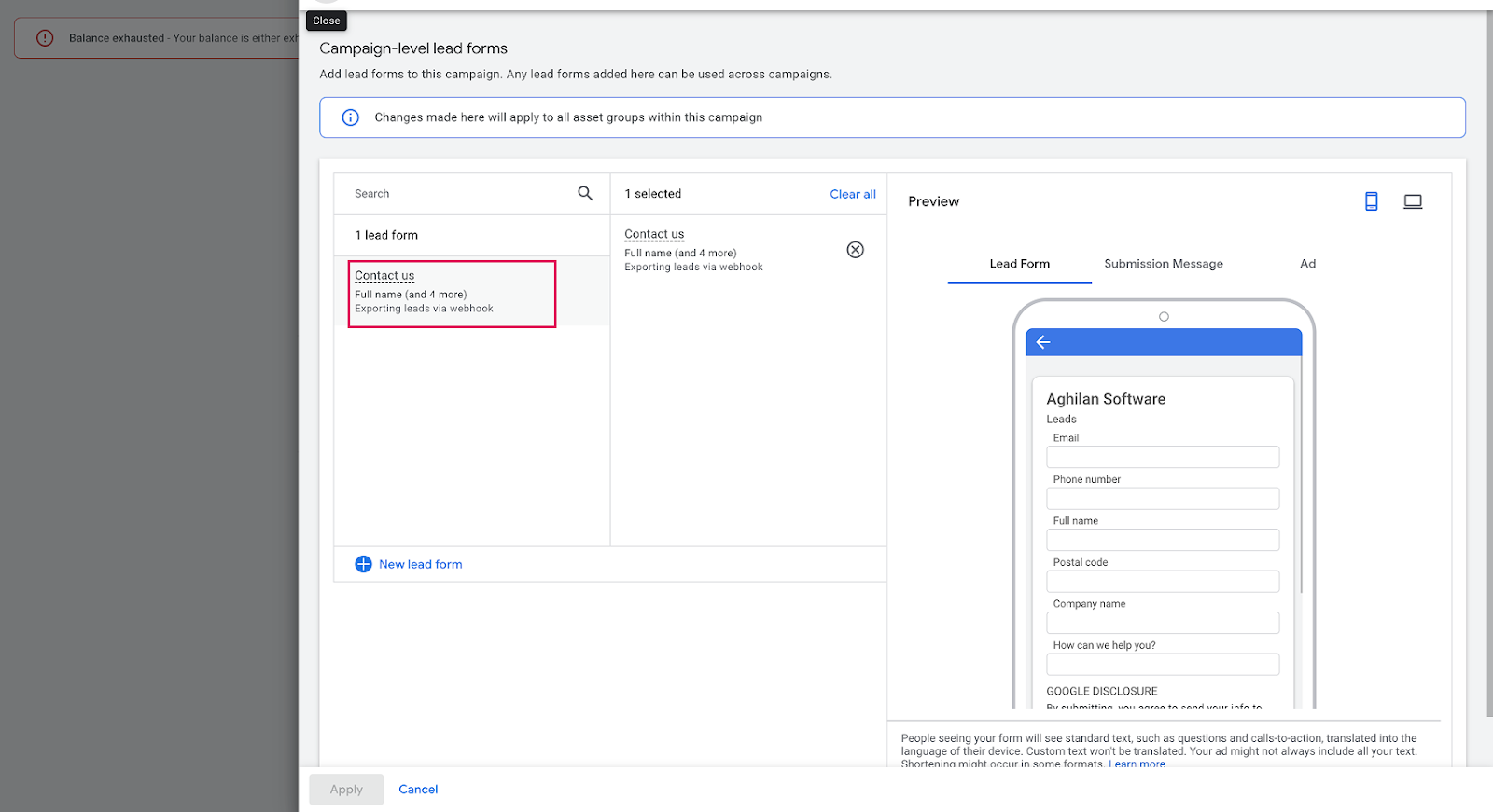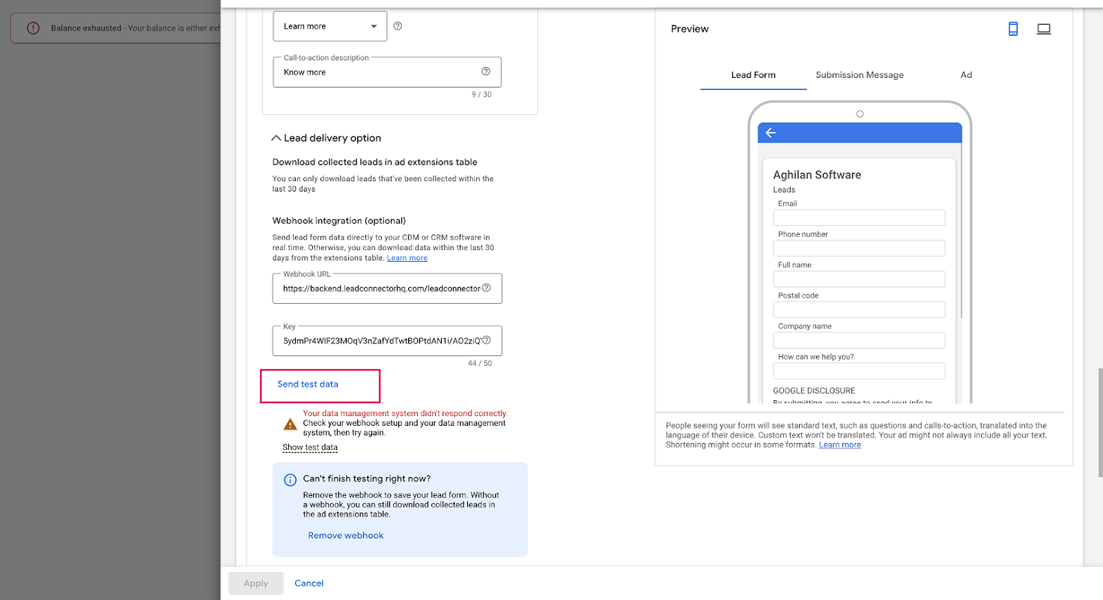 Use the Map Fields button to align your Google ad form fields with CRM fields.