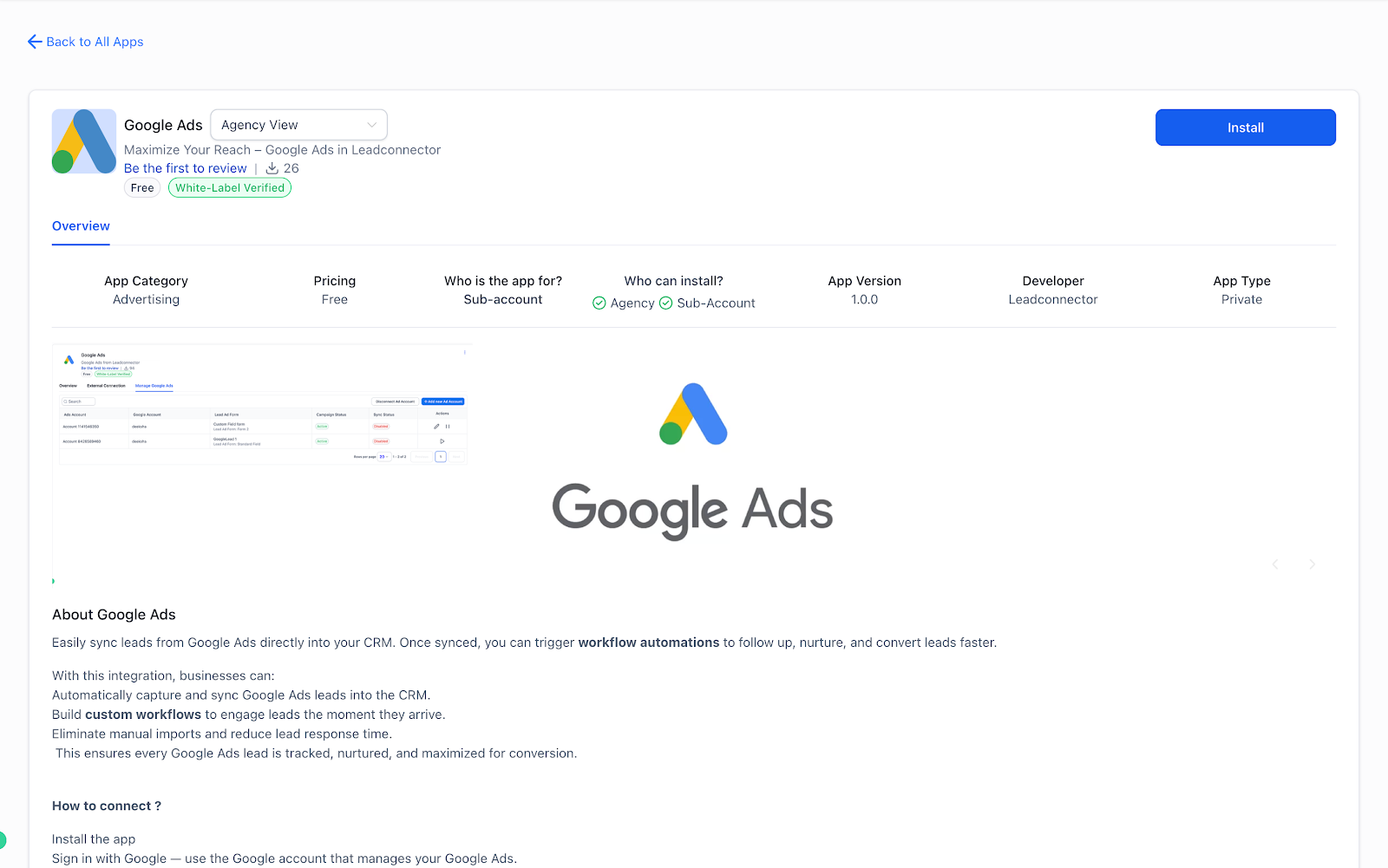 Step 5: Set up workflows using the trigger “Google Lead Form Submitted” to automate your follow-up actions when a new lead comes in.