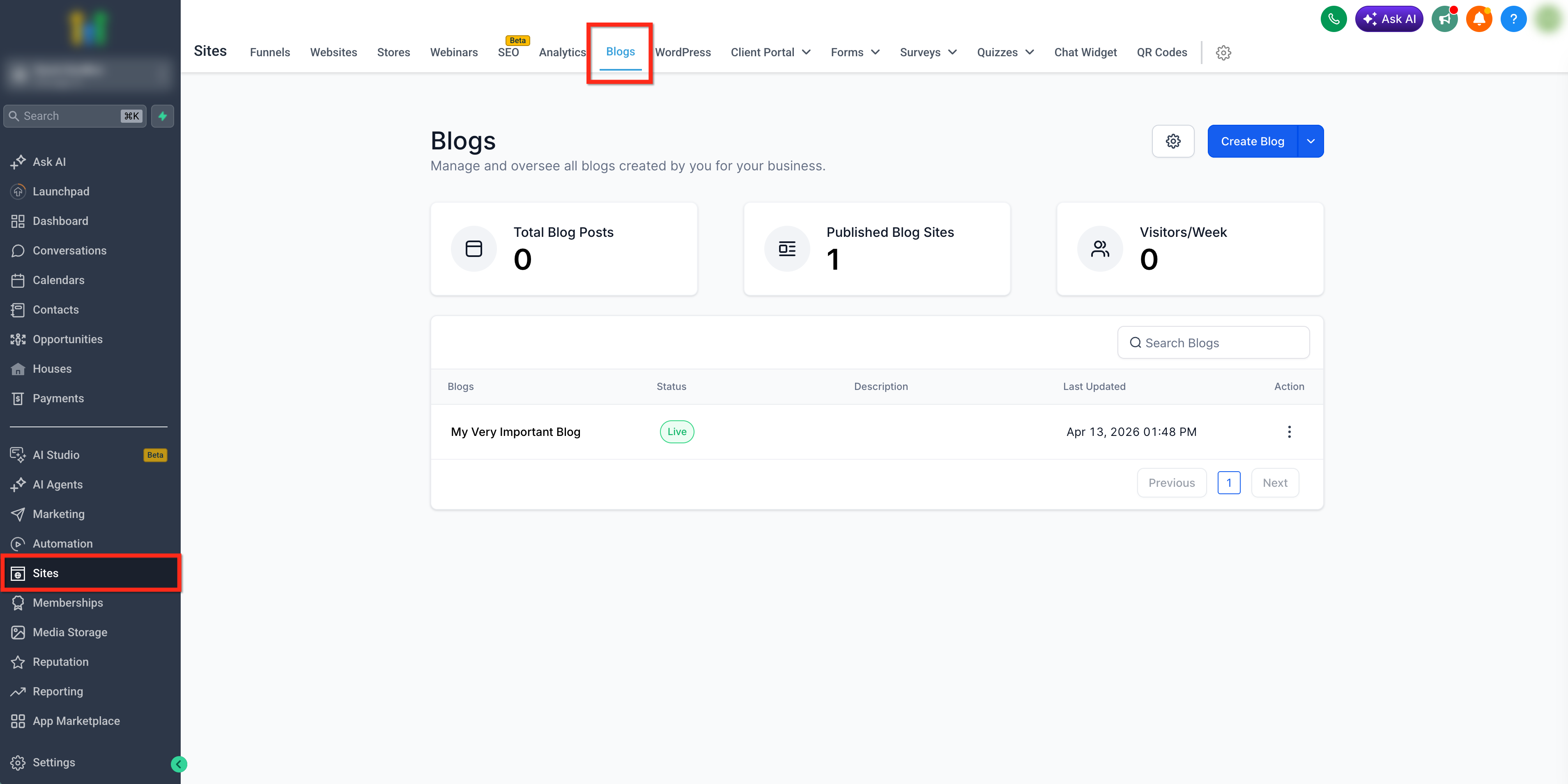 Blog Post AI is HighLevel’s built-in AI writing assistant for the Blogs. It helps you create SEO-friendly content from inside the Blog Editor. Instead of starting from a blank page or relying on external writing tools, you can generate and refine blog content in one place.