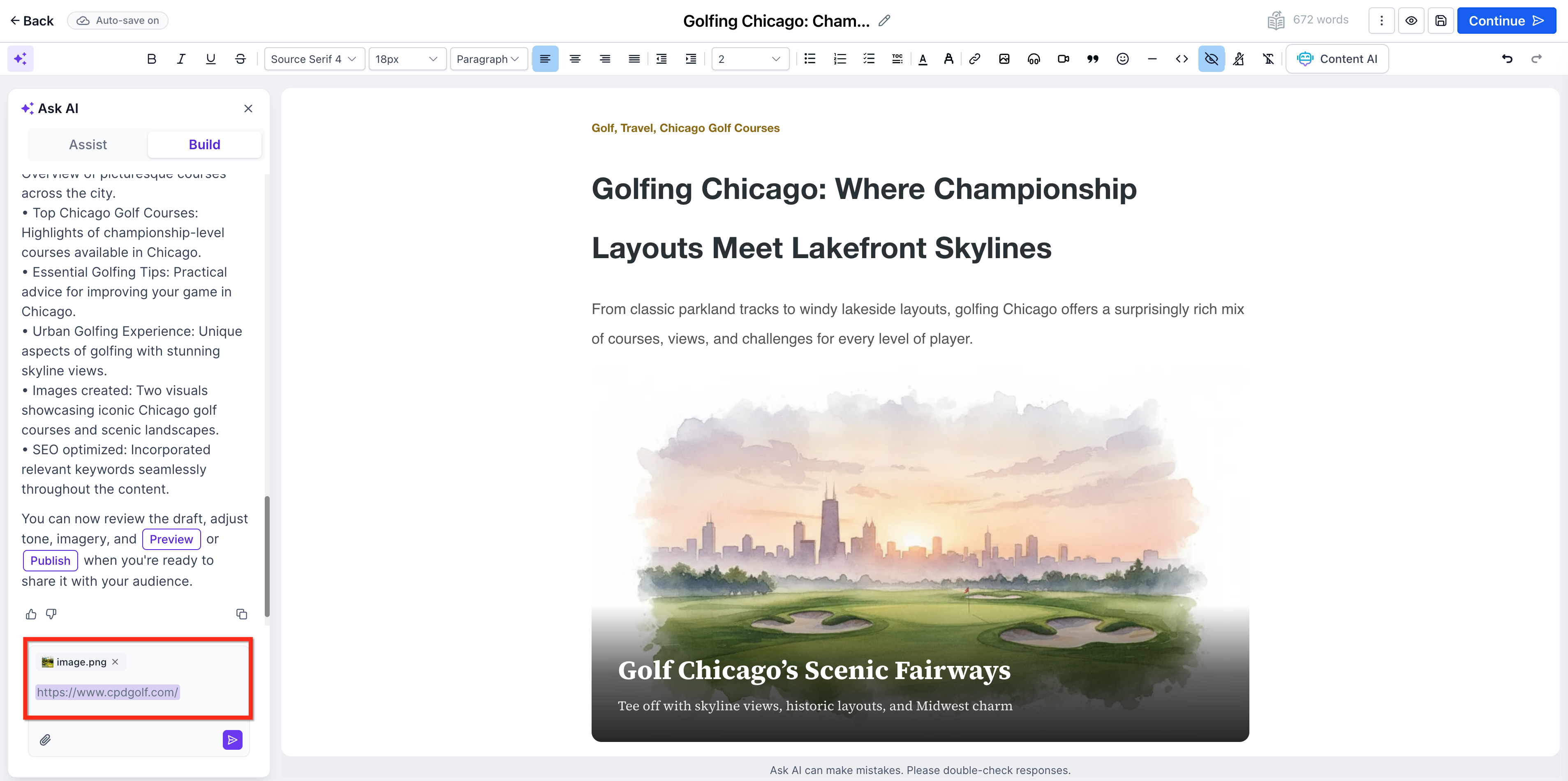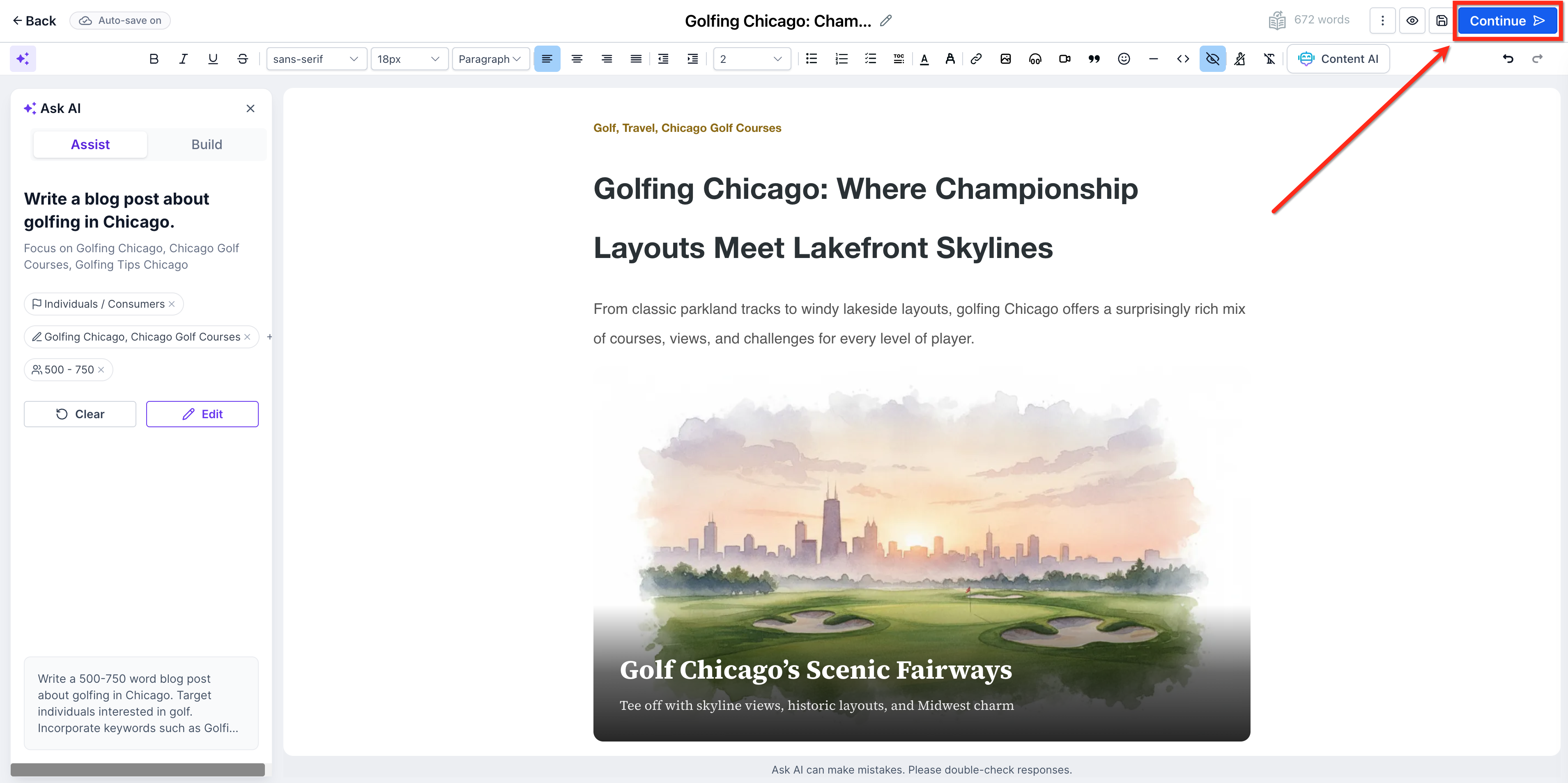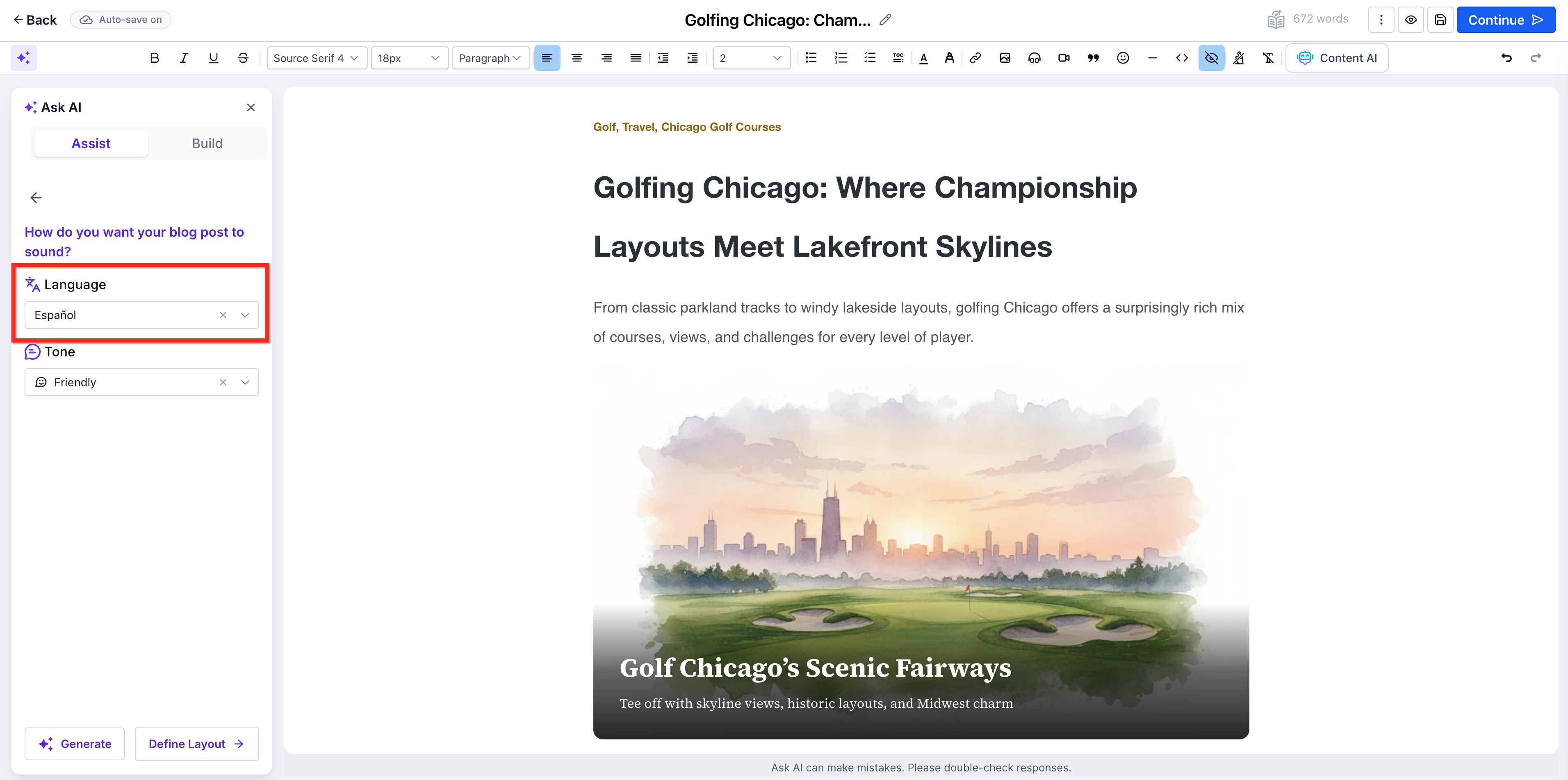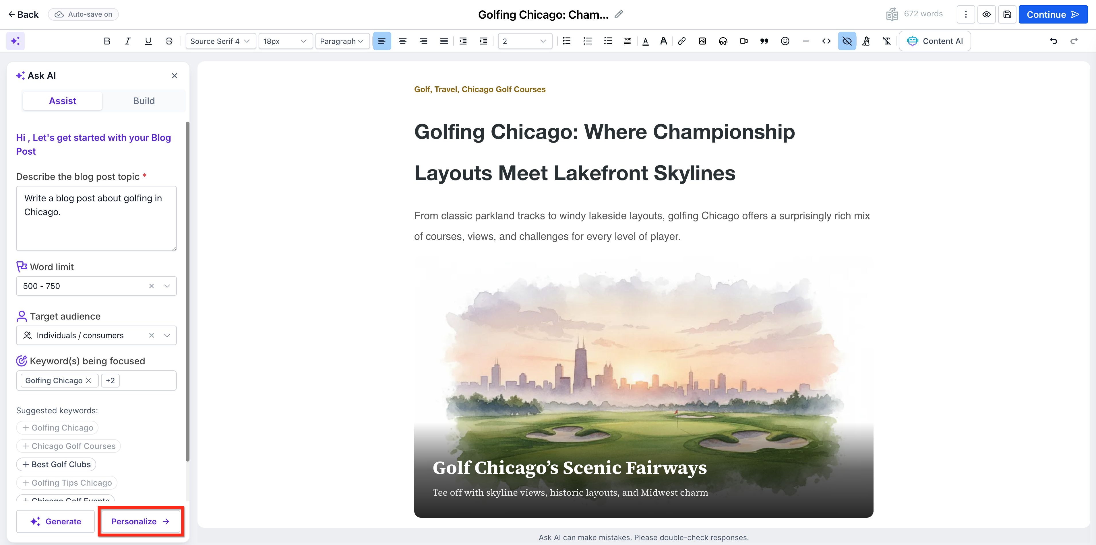 After generating content, you can seamlessly refine your post. Inside the editor, you can: