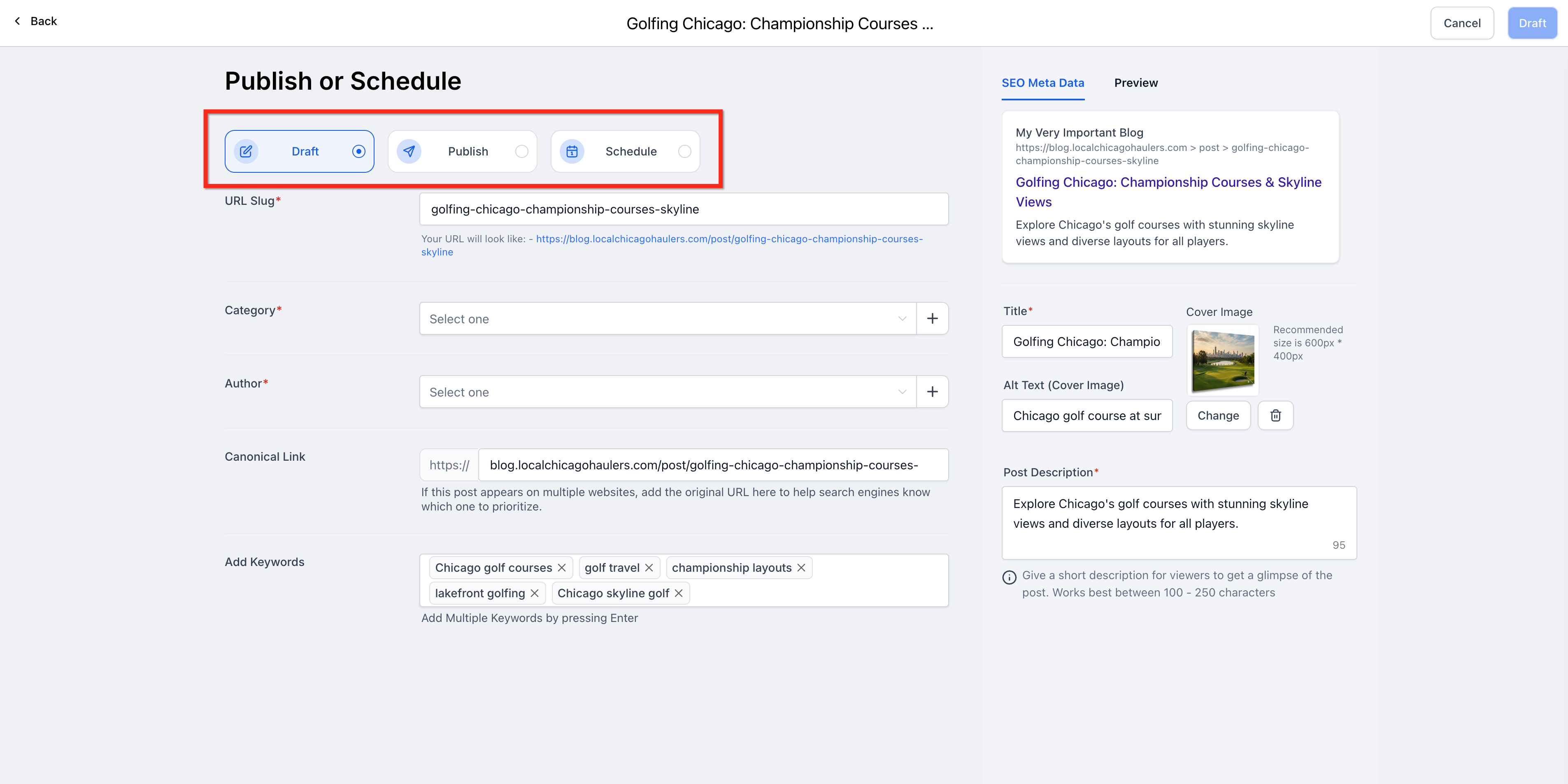 Streamlined Publishing: Save your work as a draft or publish directly after reviewing the final content.