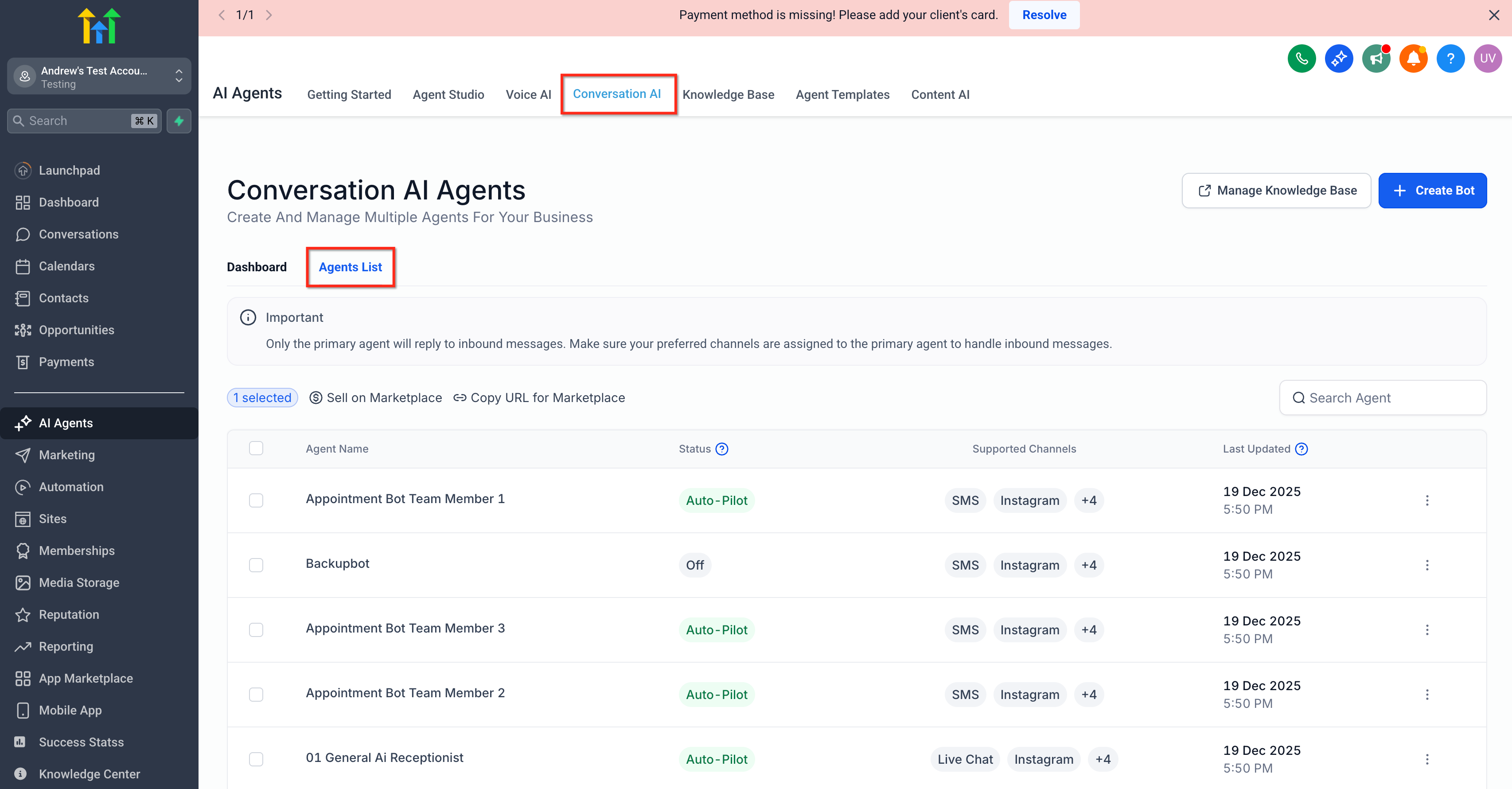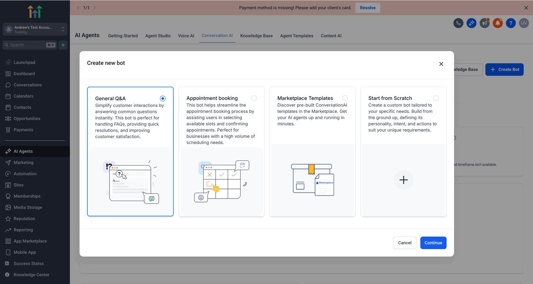 - Navigate to AI Agents and click on Conversation AI.