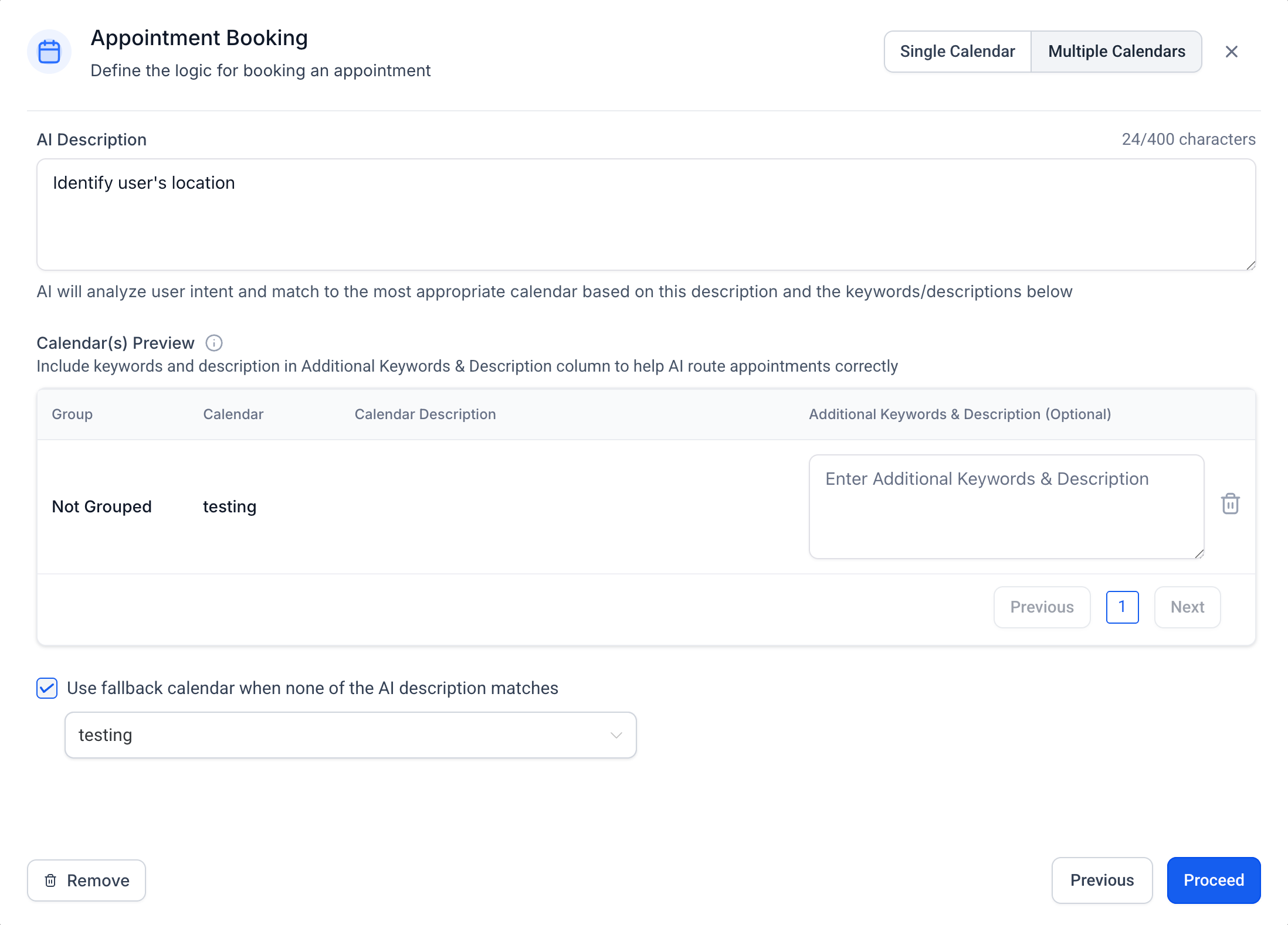 - Add AI Description and Choose a Fallback Calendar (optional).