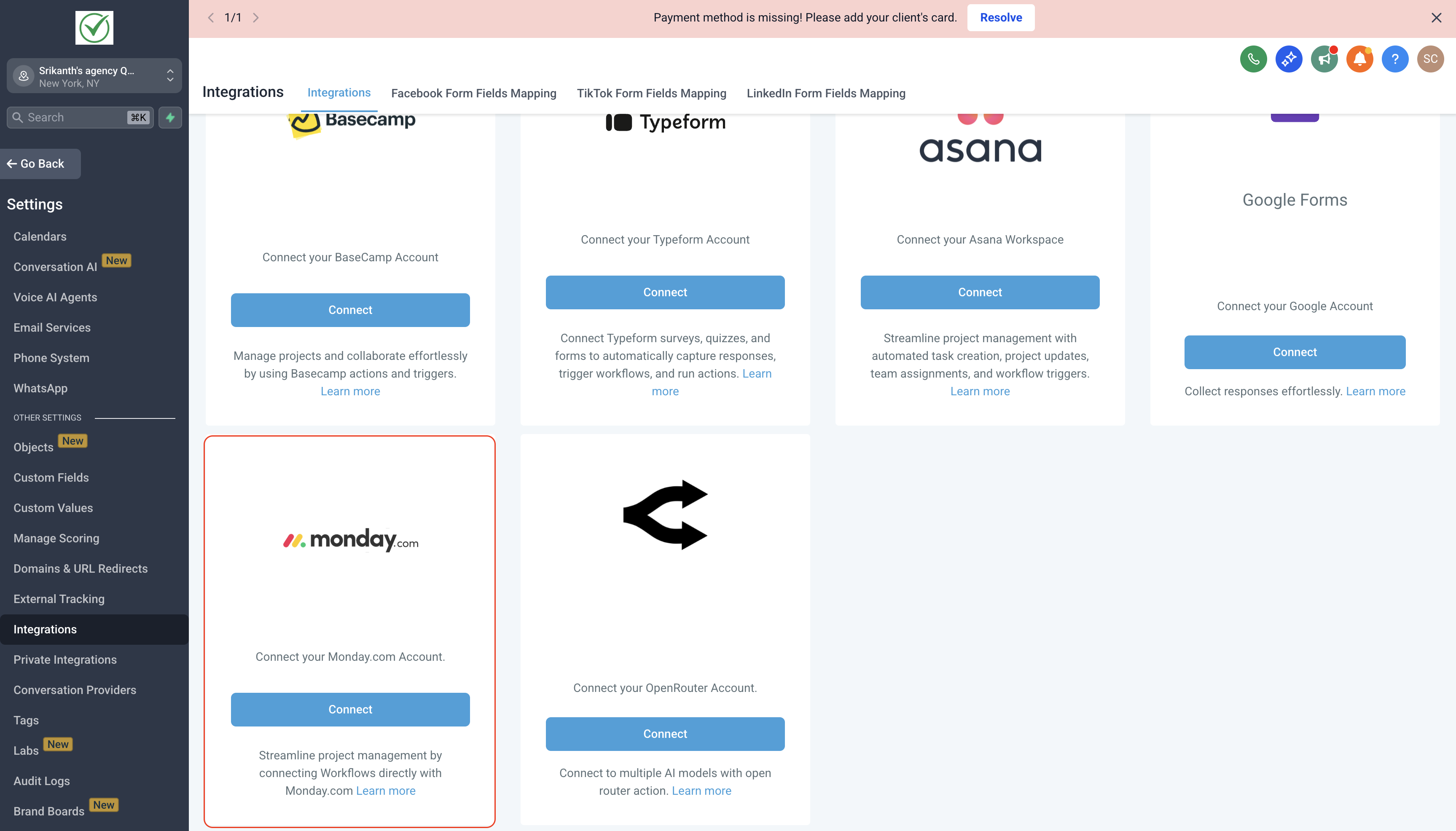The Monday.com integration allows you to automate workflows between Monday boards and HighLevel, enabling real-time syncing of tasks, statuses, updates, and users.