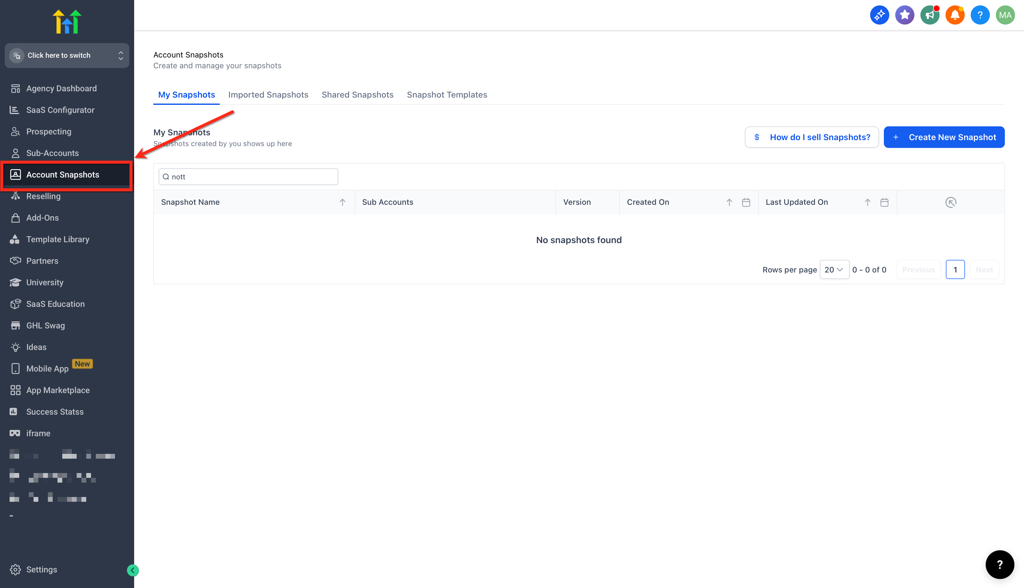 Users with access to Agency View → Account Snapshots will see onboarding on first use when no Snapshots exist. If you don’t see it, verify your role/permissions.
