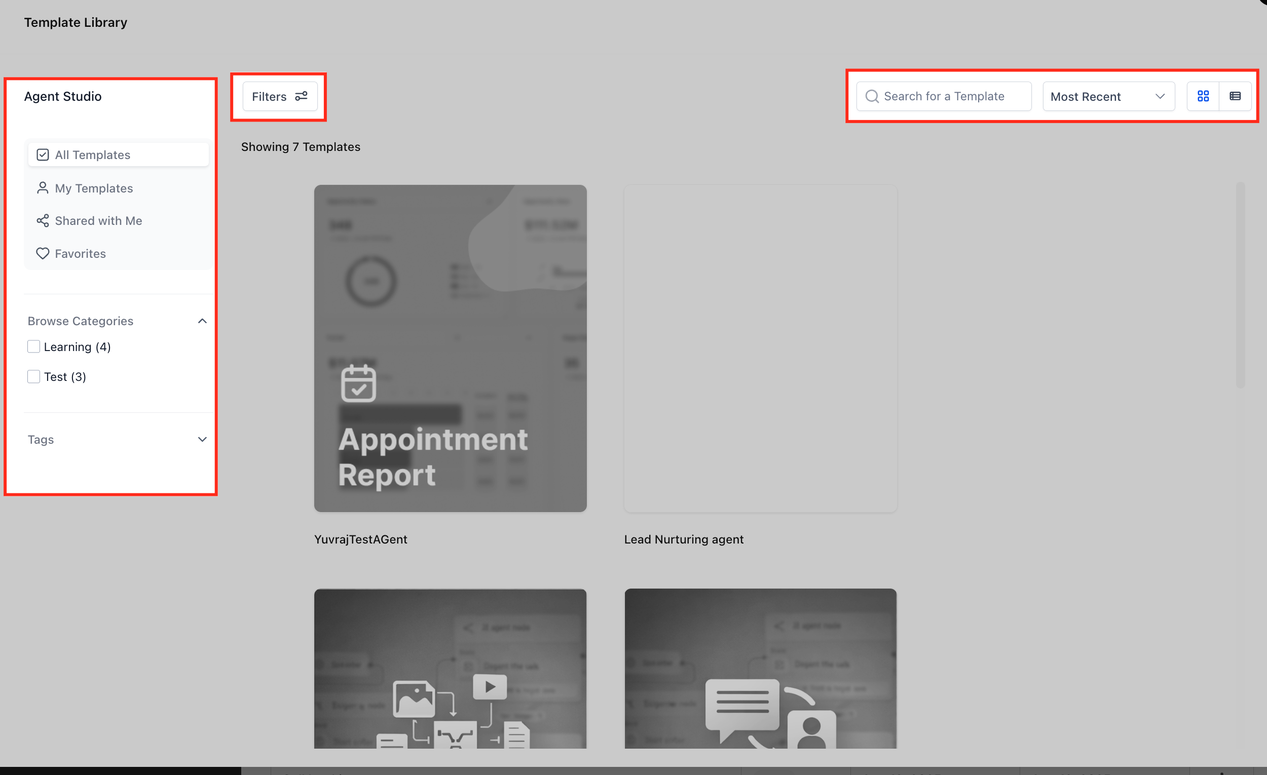 - Explore Template Library Views (Sort, Filter, Categories, Tags)