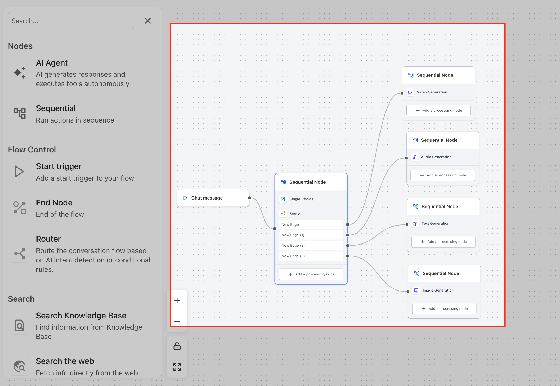 - Open the agent canvas to adjust nodes, prompts, tools, variables, and connections.