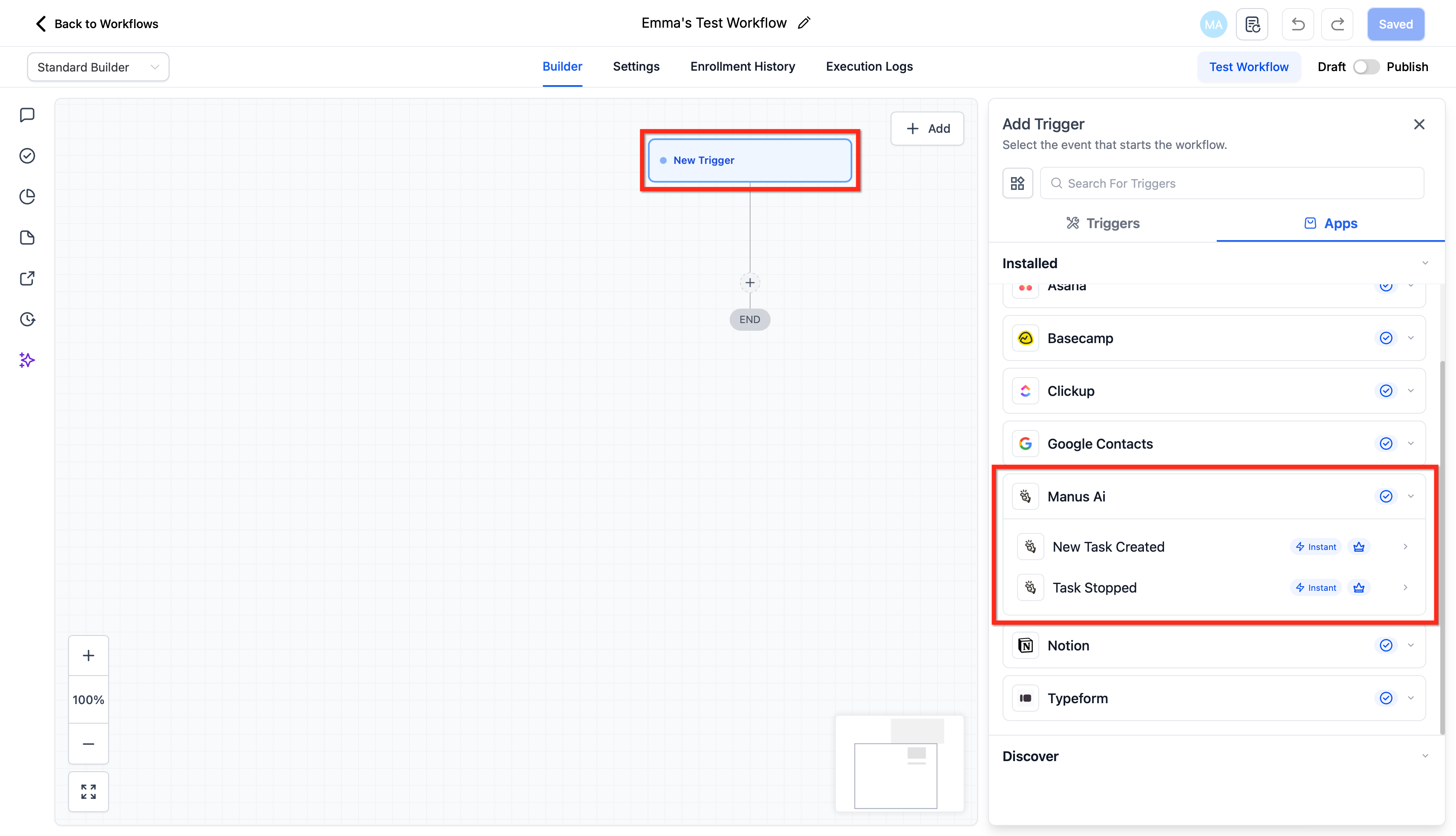 Instant Task-Based Triggers: Automatically trigger workflows when Manus tasks are created or stopped.