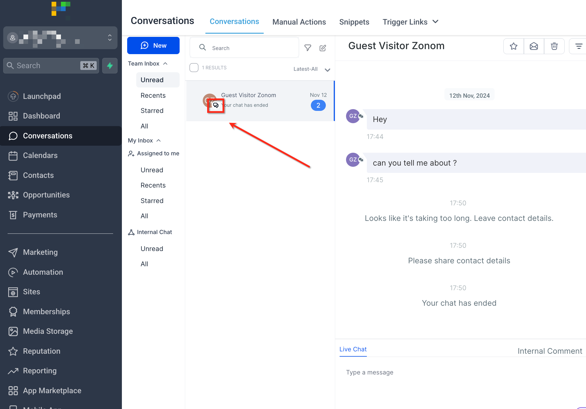 Web Chat enables visitors on your website to start a conversation instantly. When a visitor sends a message through the chat widget, the message is routed directly to the Conversations inbox in your sub-account.