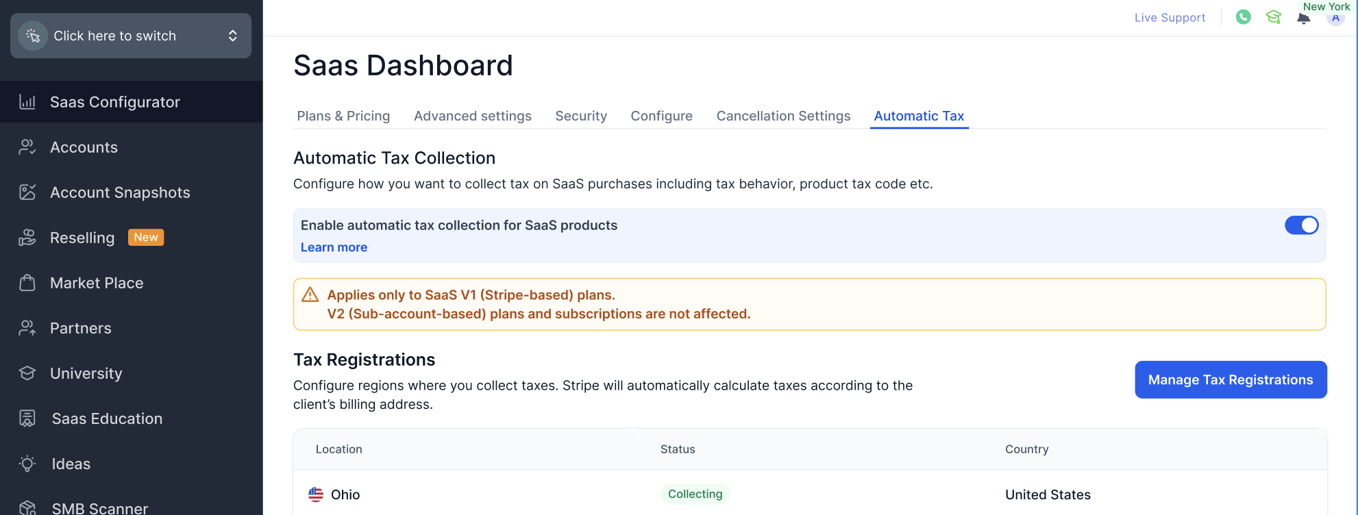 - Navigate to SaaS Configurator → Automatic Tax.
