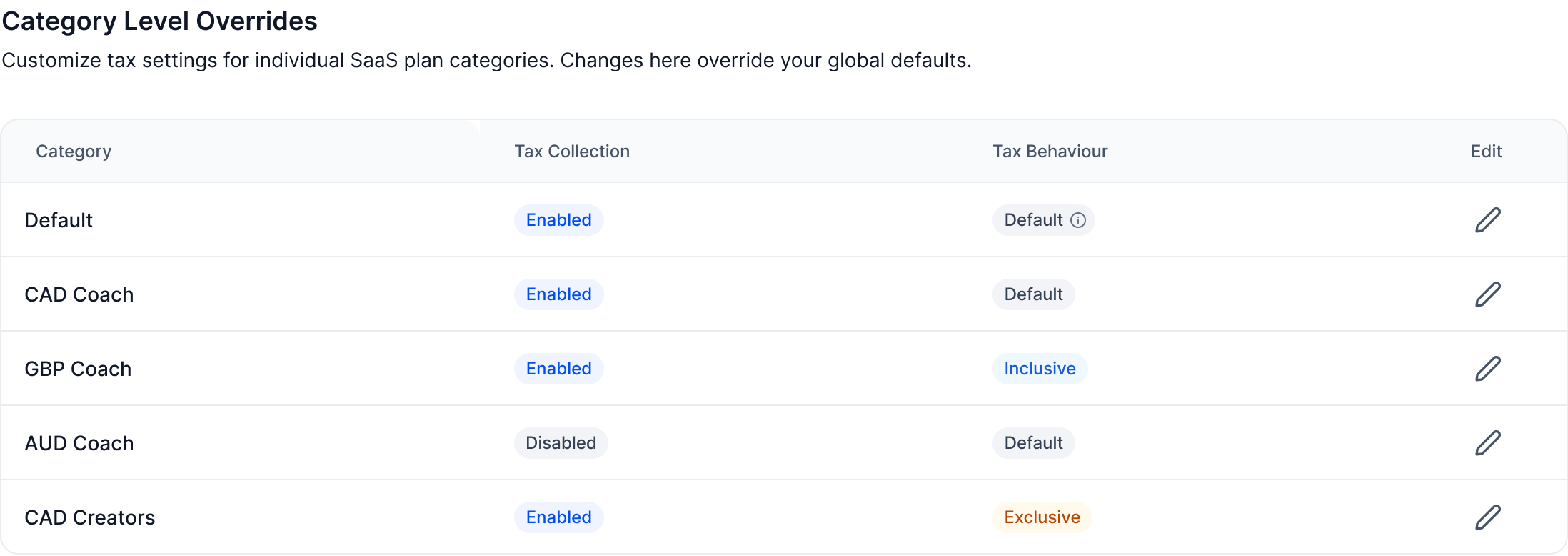 If settings are changed mid-billing cycle, active subscriptions retain their original tax configuration.