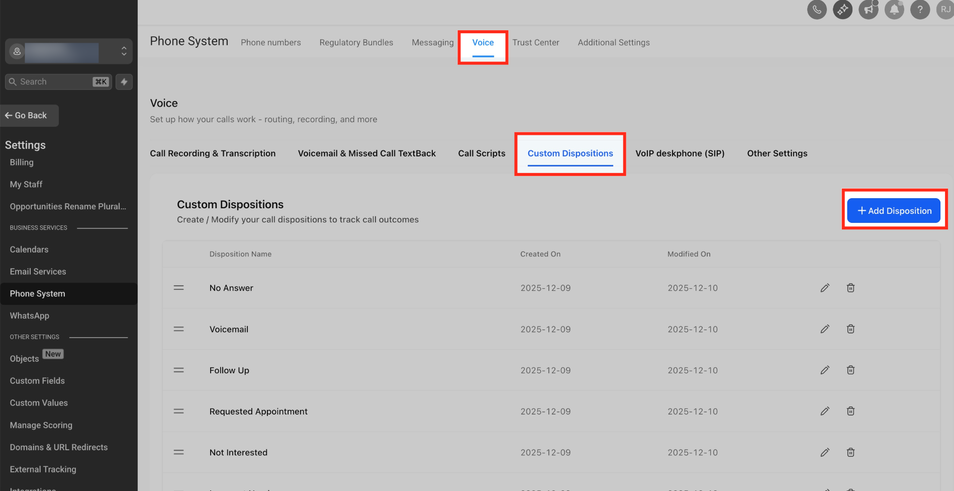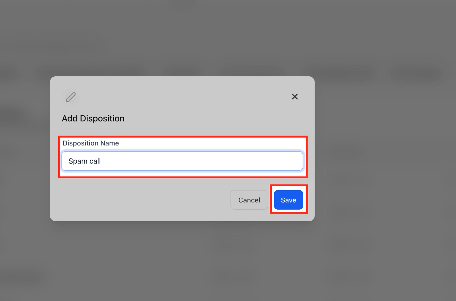 - Create the disposition: Settings → Phone System → Dispositions → Add Disposition → Name: “Spam call” → Save.