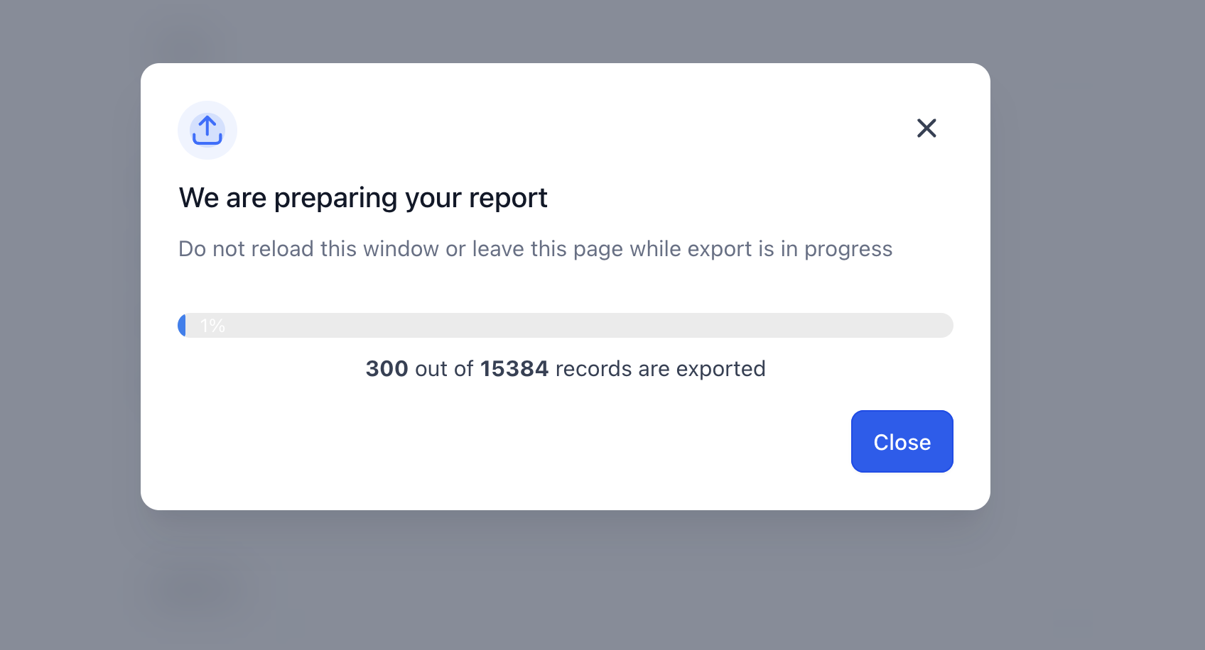 Exports are downloaded as a CSV file, which can be opened in Excel, Google Sheets, or any spreadsheet tool.