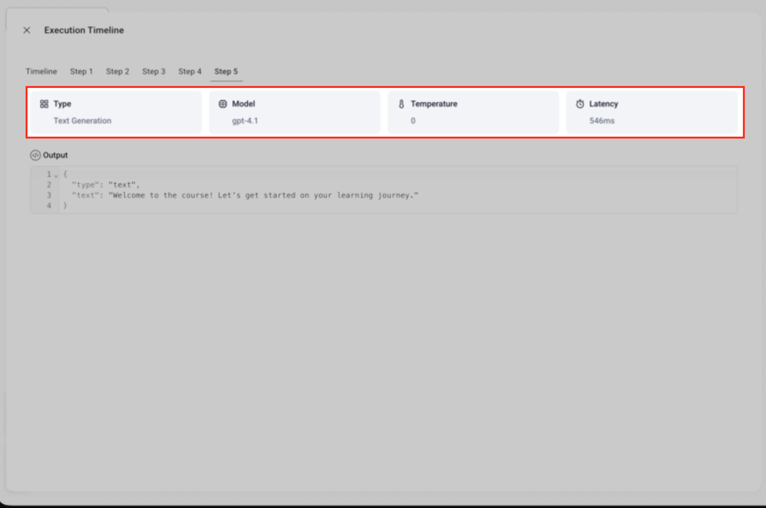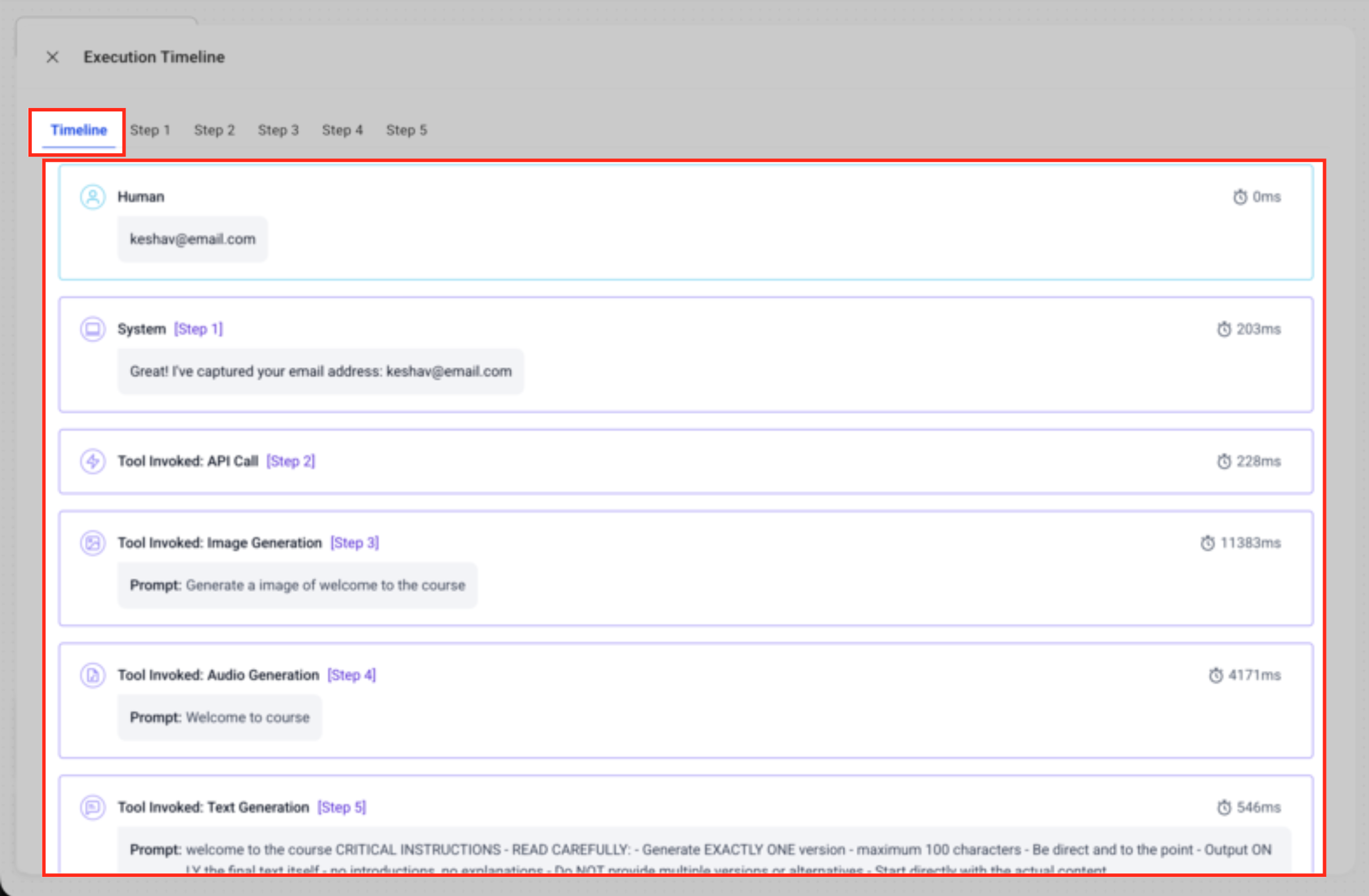Screenshot: “Timeline showing step-level latency badges”
