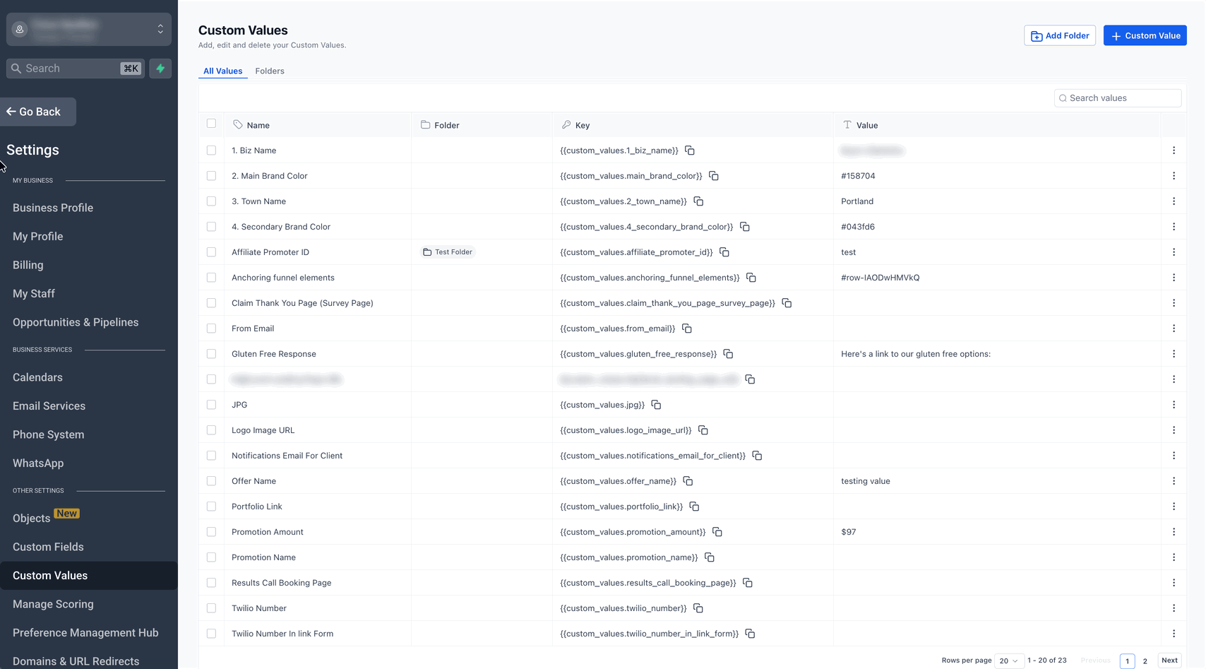This guide explains how to use Account details, Contact data, real-time date and time, form submissions, and Custom Values inside your agents without duplication or manual updates.