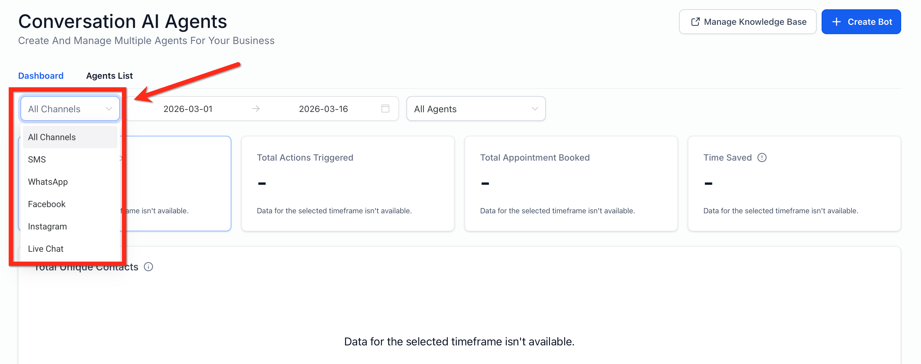 Channel-level visibility: Understand how Conversation AI performs across different communication channels.