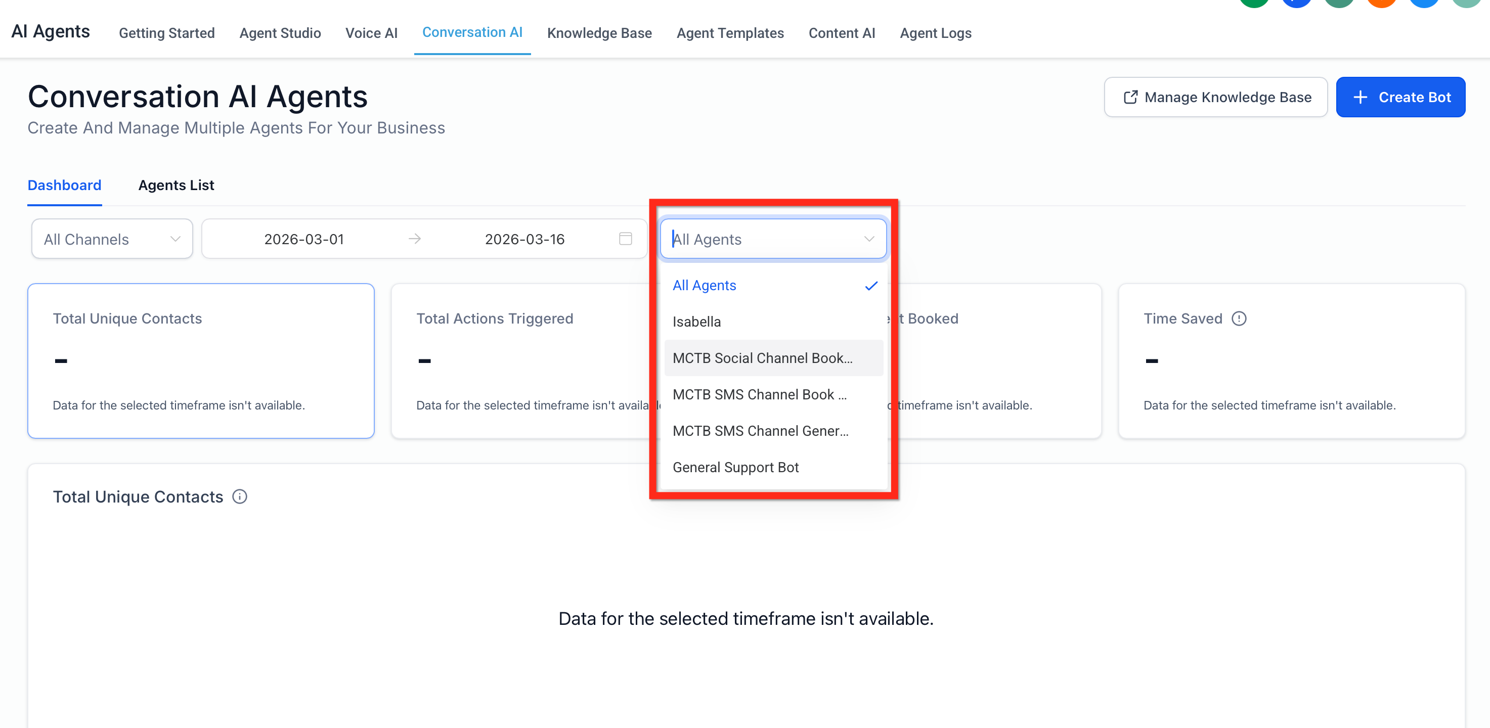 One dashboard for all agents: Monitor performance across every Conversation AI agent without switching between agent pages.