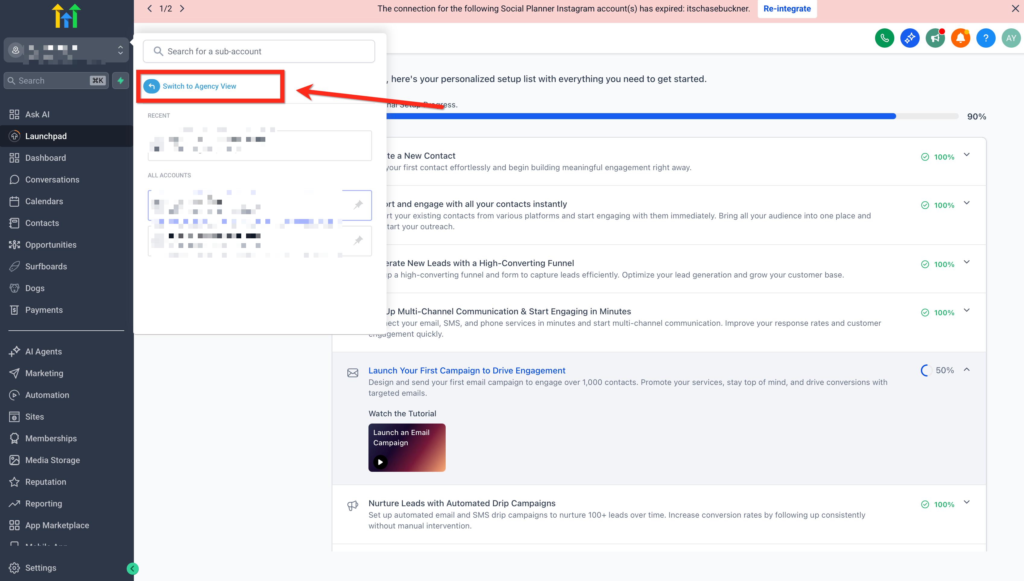 Knowing where the dashboard lives in HighLevel helps teams access analytics quickly, whether they’re reviewing overall trends or checking a single agent.