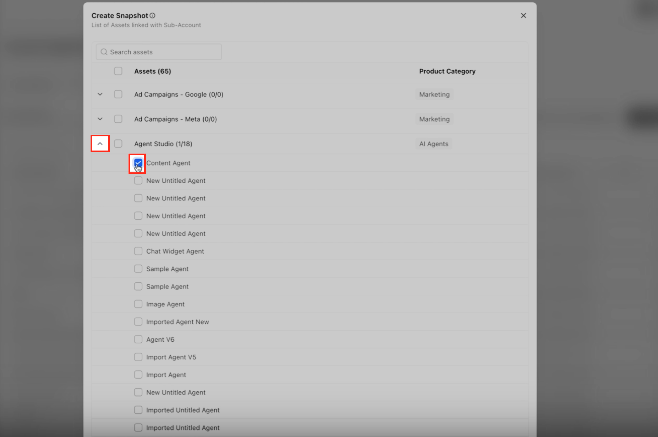 Agent Studio Snapshots allow you to package one or more AI agents inside an Account Snapshot so they can be loaded into other sub-accounts.