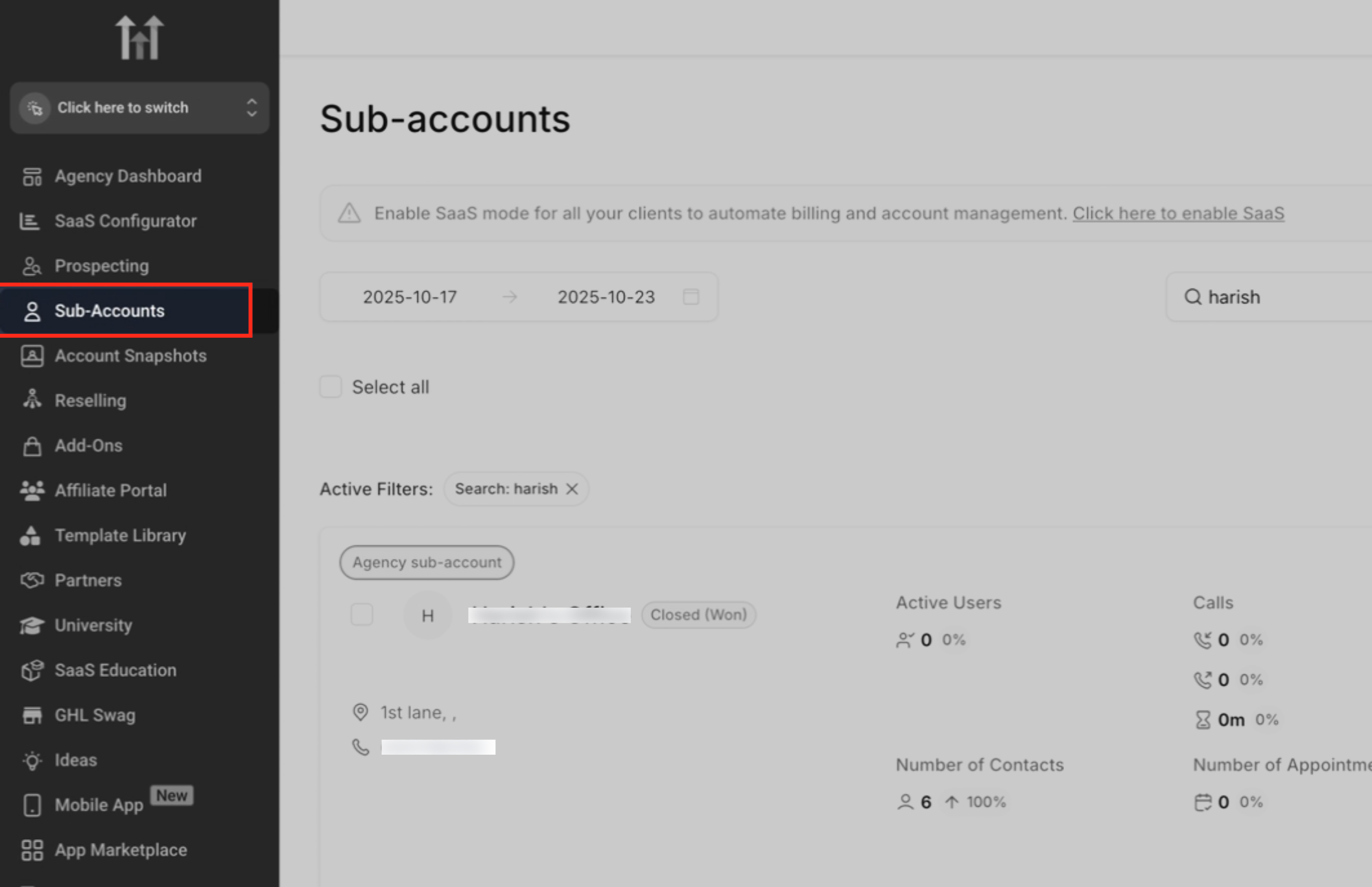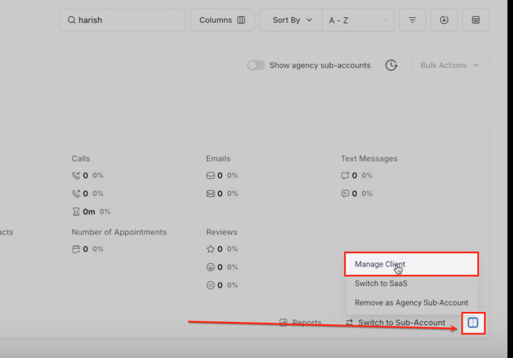 Go to Agency View → Sub-Accounts