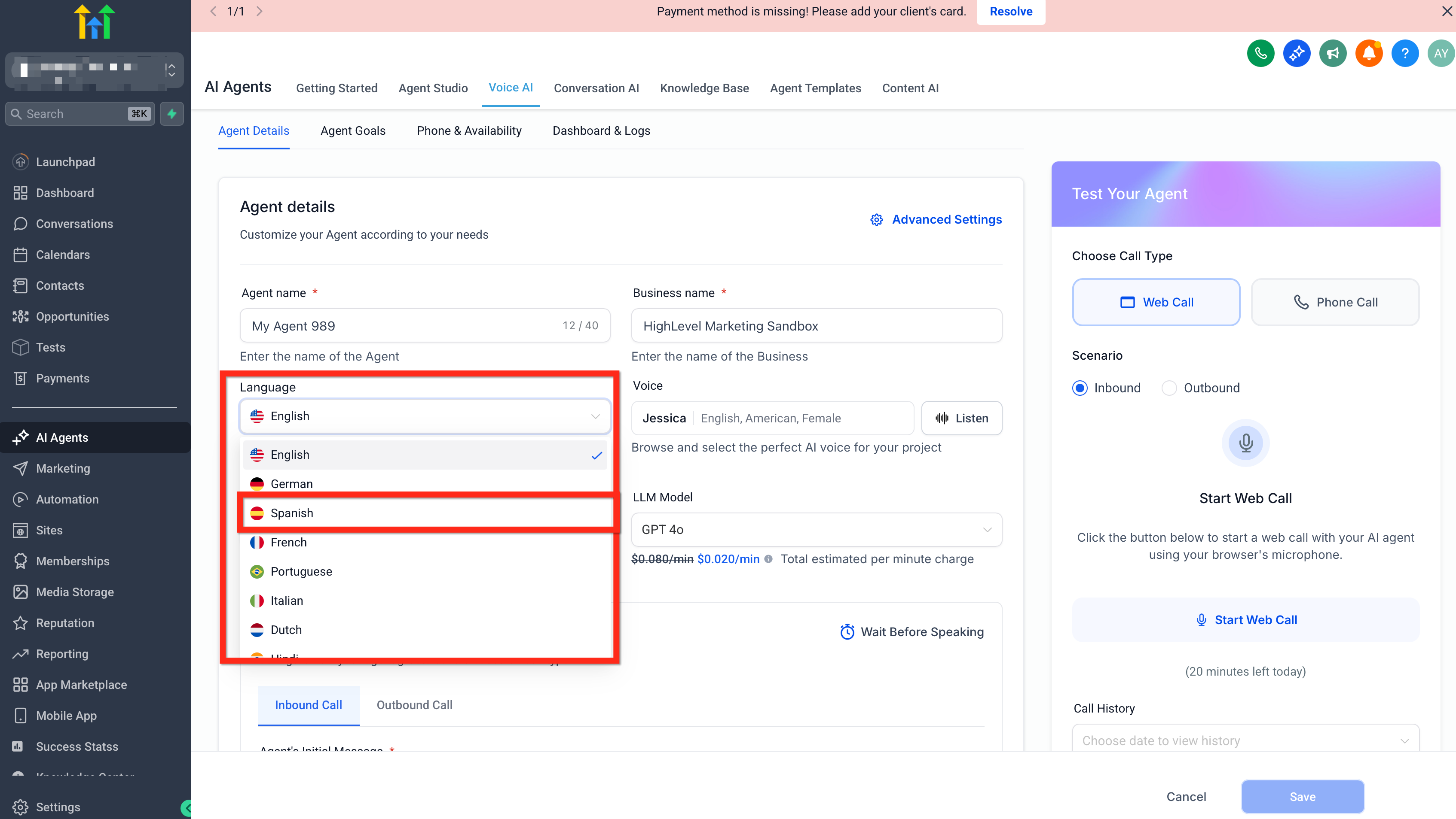 Make your Voice AI Agent feel more natural for every caller by automatically translating the initial greeting when you change the agent’s language. This update helps you launch multilingual voice experiences faster, reduces manual setup, and creates a more localized first impression. If you create or edit Voice AI Agents in HighLevel, this feature helps streamline setup while keeping your greeting aligned with the selected language.