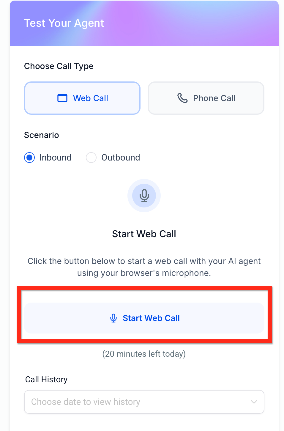 Run a test call using Phone Call or Web Call to verify that the greeting sounds correct for callers.