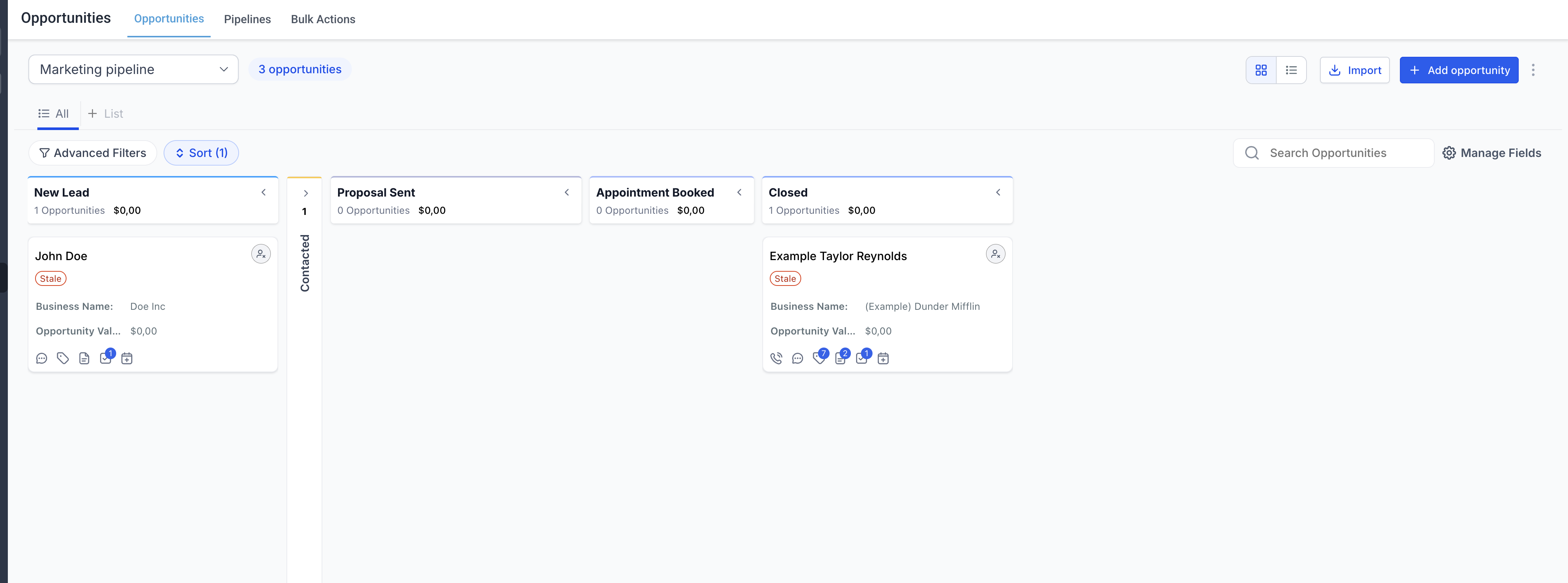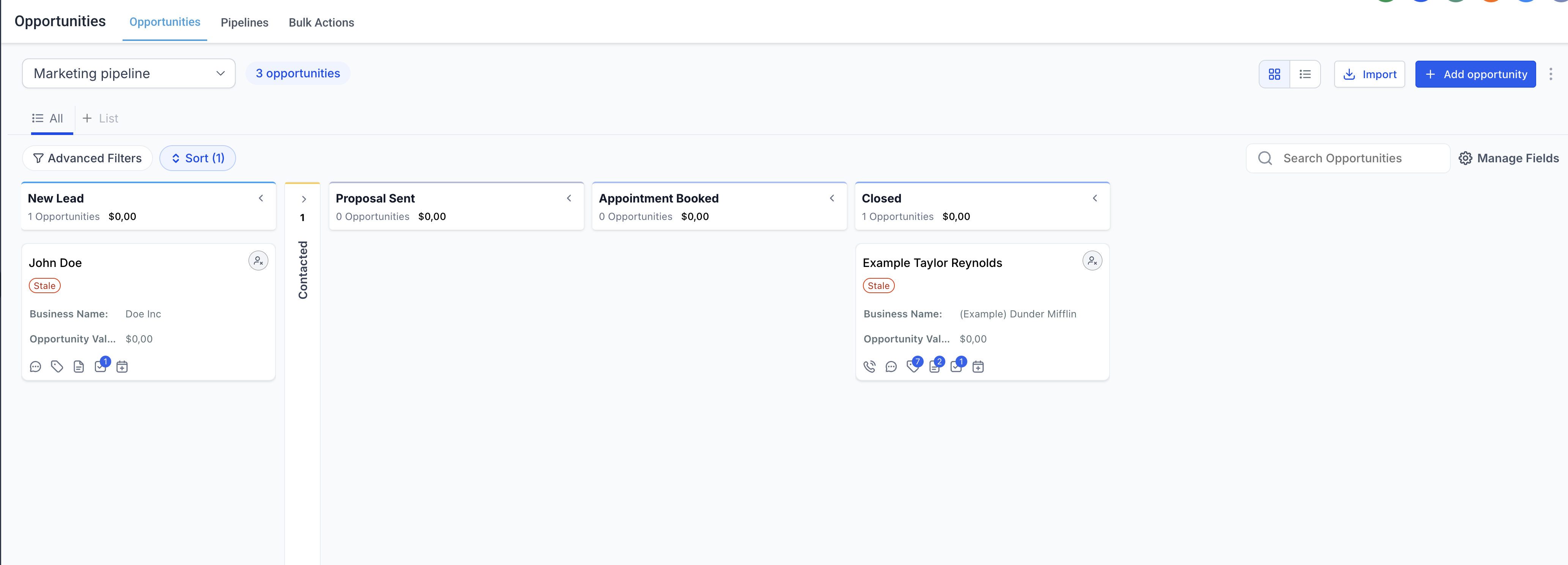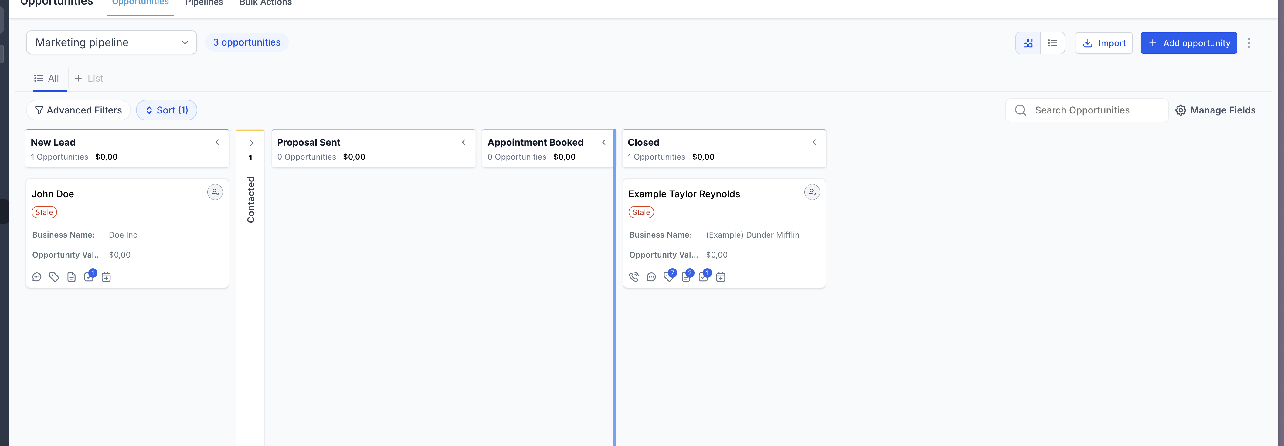 The Kanban view in Opportunities helps you visualize and manage deals across different stages of your pipeline.
