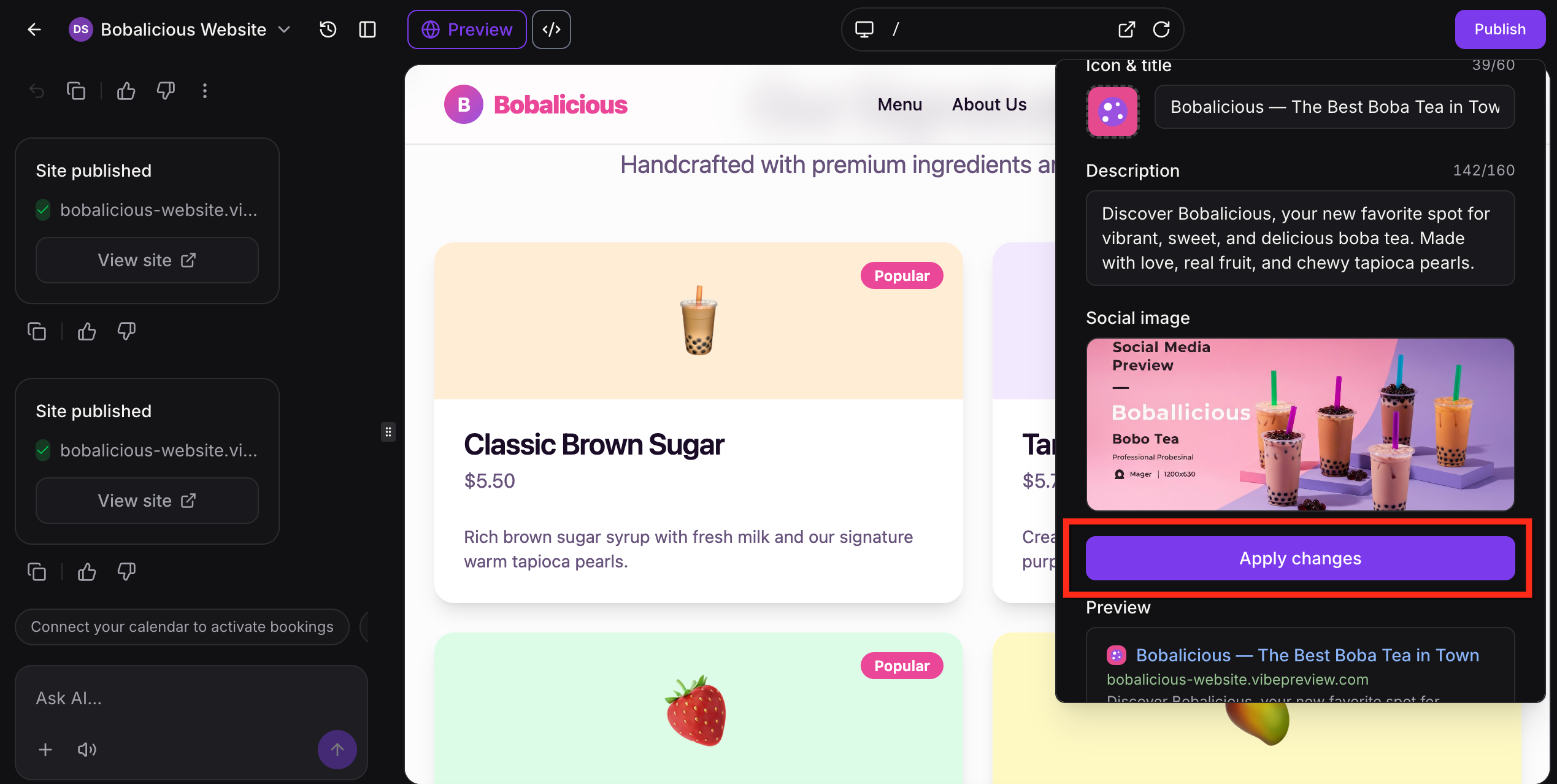 Update the icon, name, description, and social image. Click Apply Changes then click Publish.