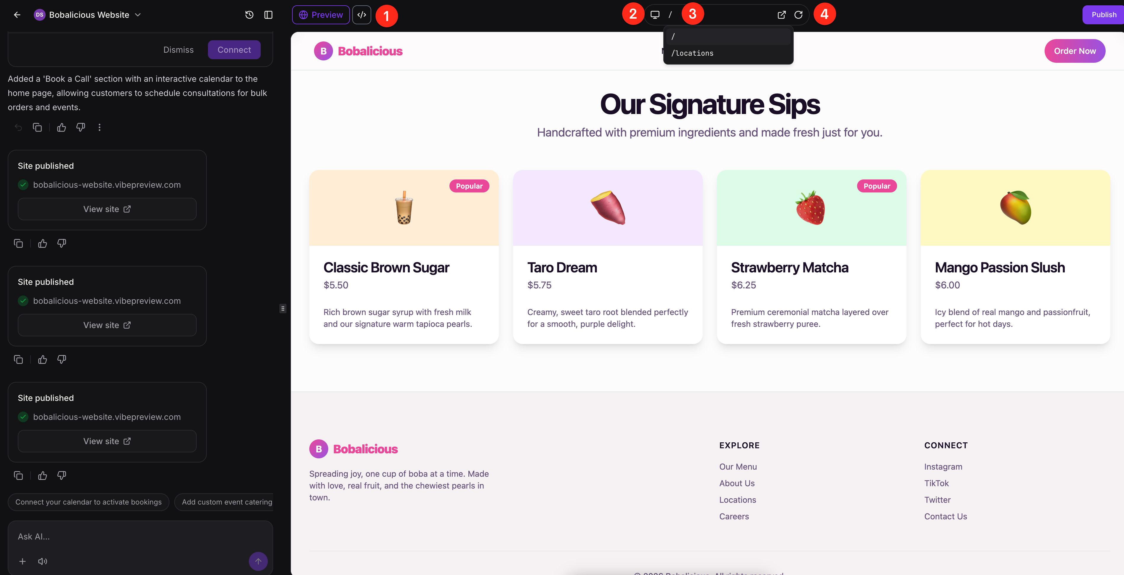 Publishing makes it easier to move your project from a draft into something you can review, share, and launch. AI Studio uses a staged publishing flow so you can publish to a preview domain first, check the live experience, and make updates before moving to a custom domain.