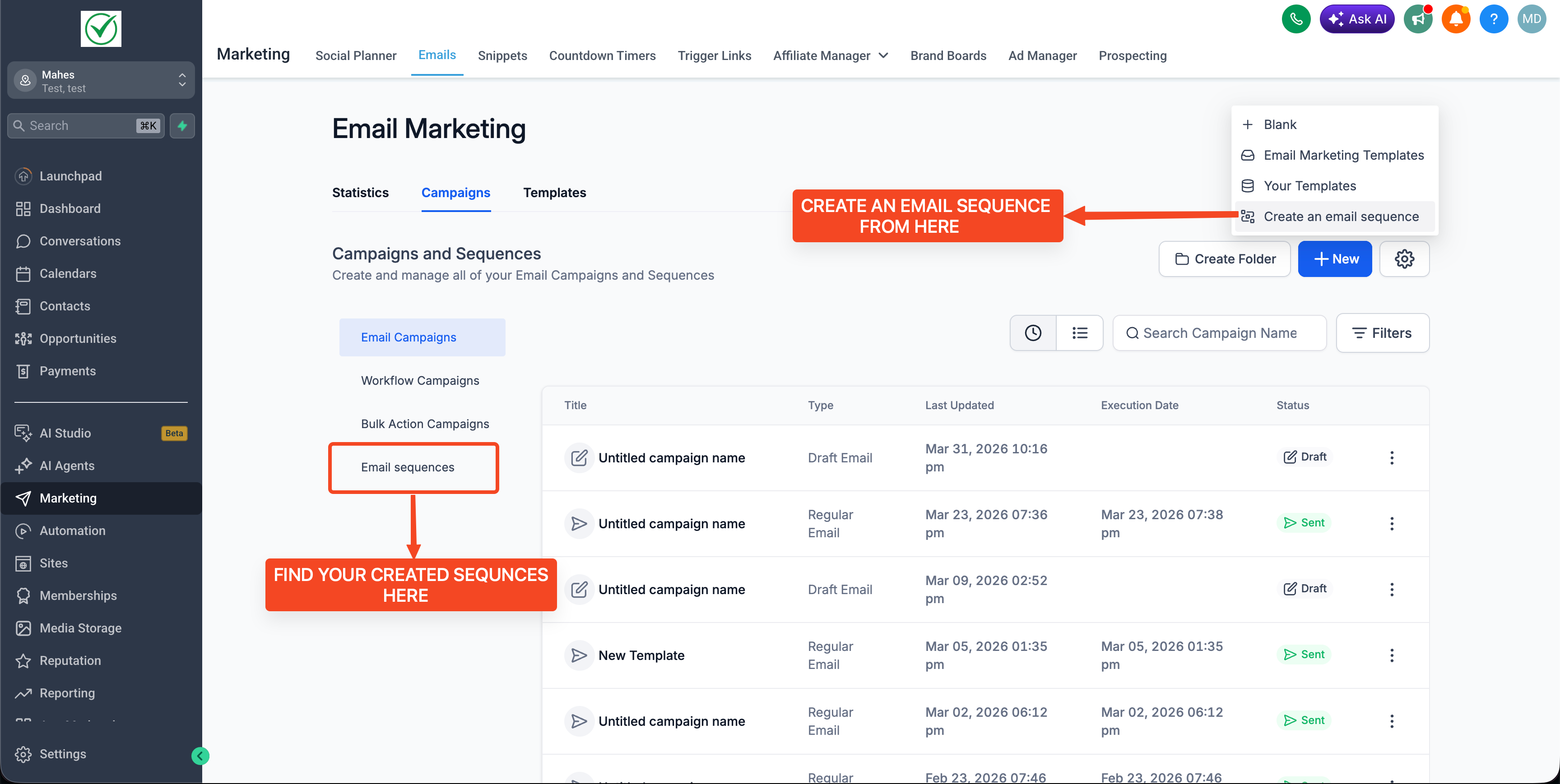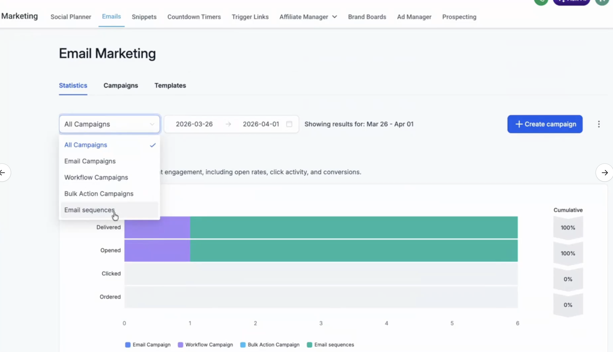 9. To look at all sequences statistics, you can also check the statistics dashboard in email marketing.