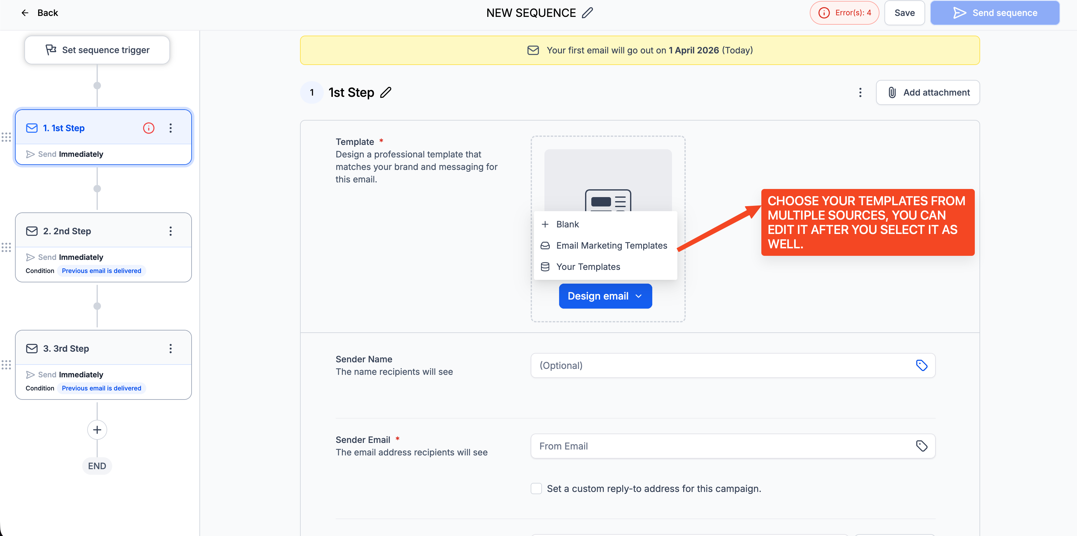 - Add multiple steps to your sequence