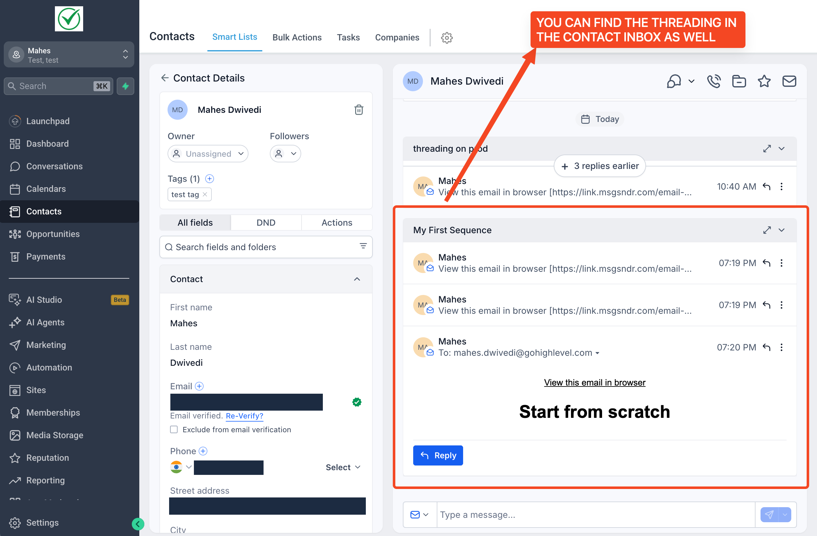 - You would find all emails are threaded in a sequence in our conversations section as well