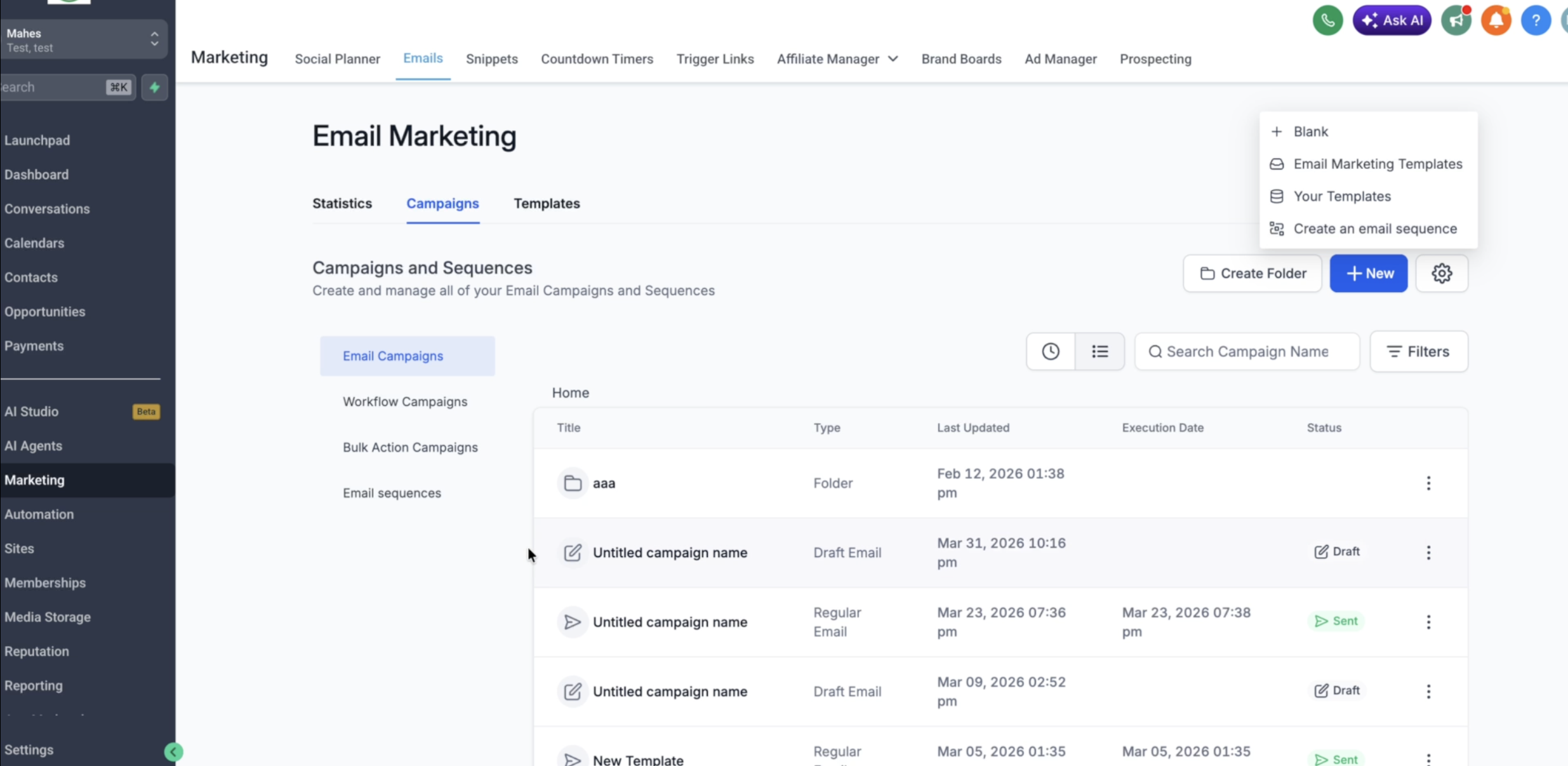 - Go to Marketing → Email → Campaigns
