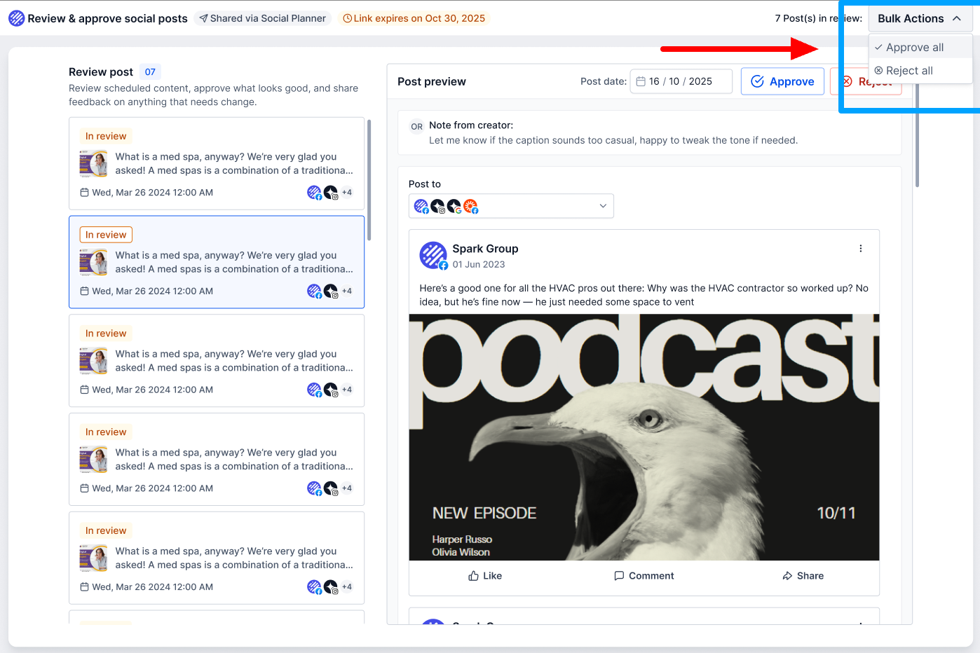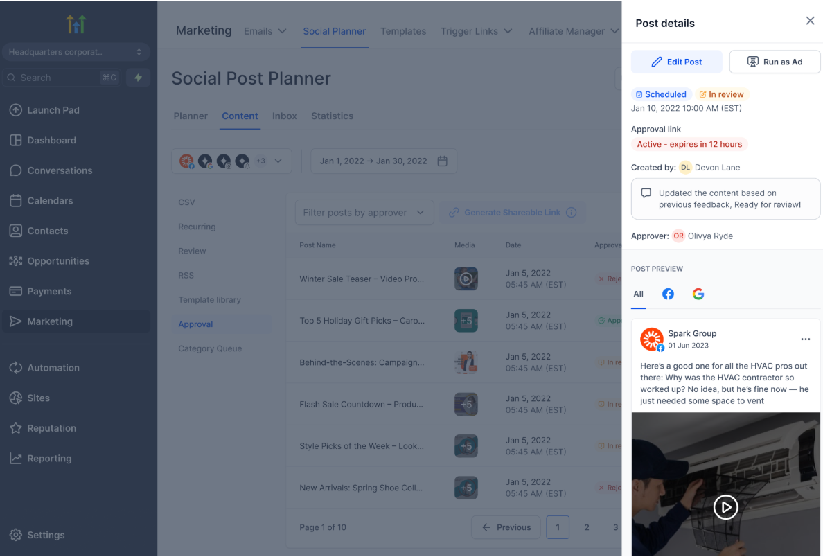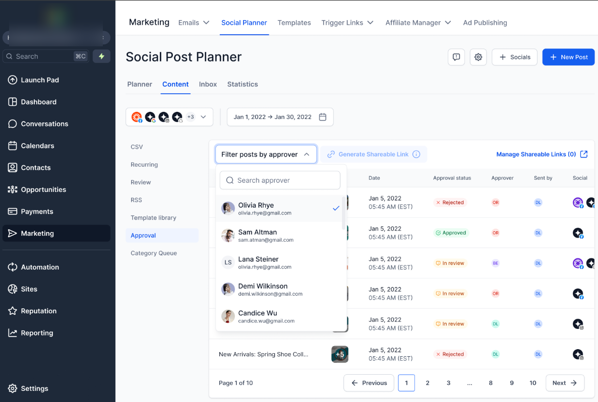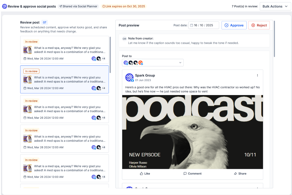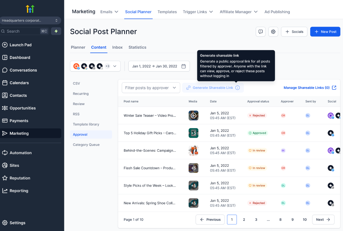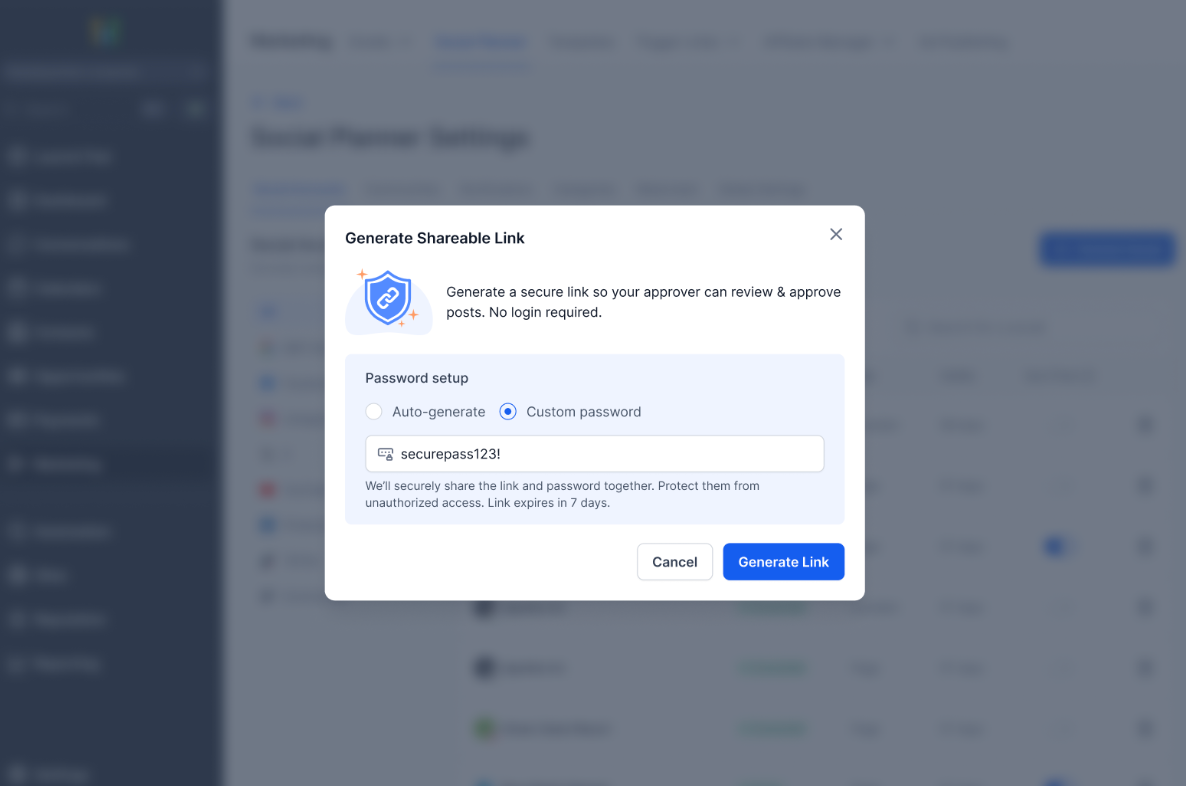 - Share posts using a secure approval link