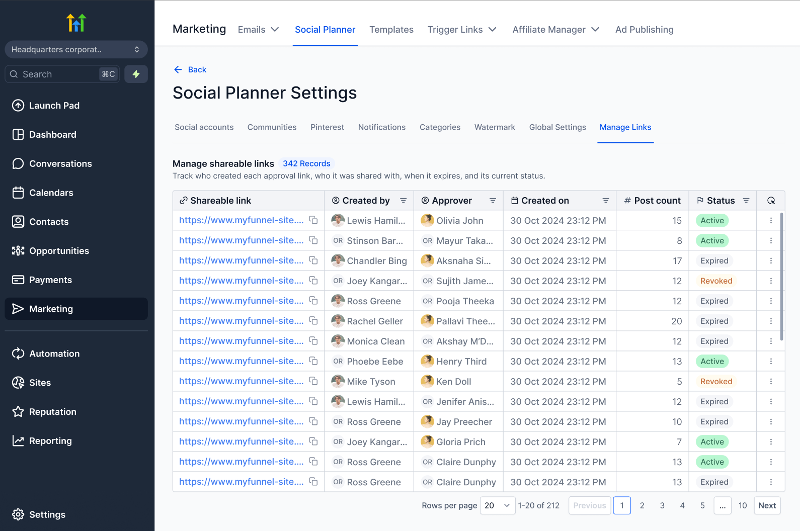 You can manage all your approval links from one place.