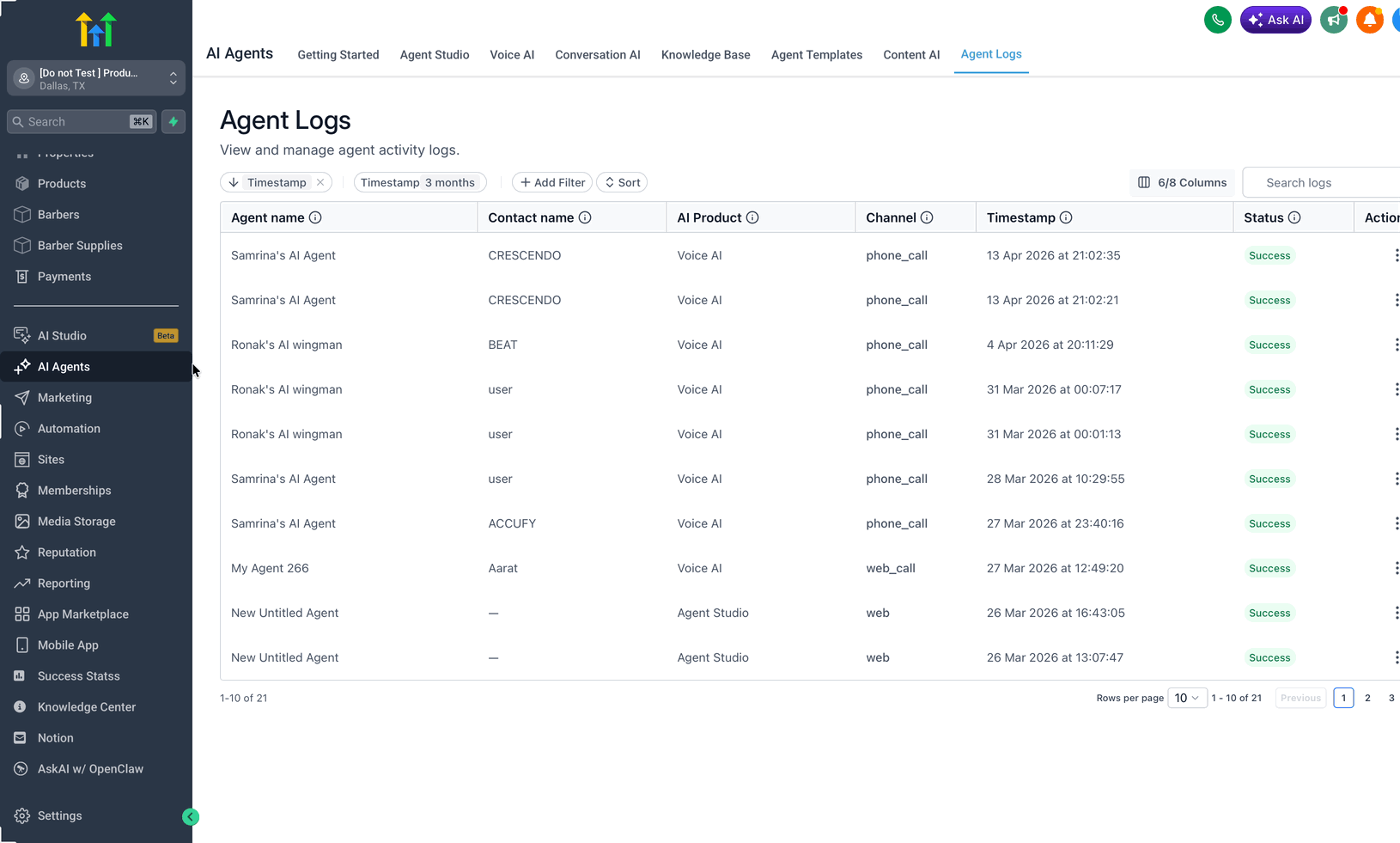Agent Logs is HighLevel’s centralized logging and tracing experience for AI agents. It is designed to give you one unified place to review logs and traces for supported agentic applications in the HighLevel ecosystem, helping you understand what is happening behind the scenes during each interaction. This added visibility makes it easier to move beyond guesswork, troubleshoot with confidence, and improve agent behavior with clearer insight into how decisions were made. As of now, Agent Logs is live for Agent Studio and Voice AI, with support for other AI products coming soon.