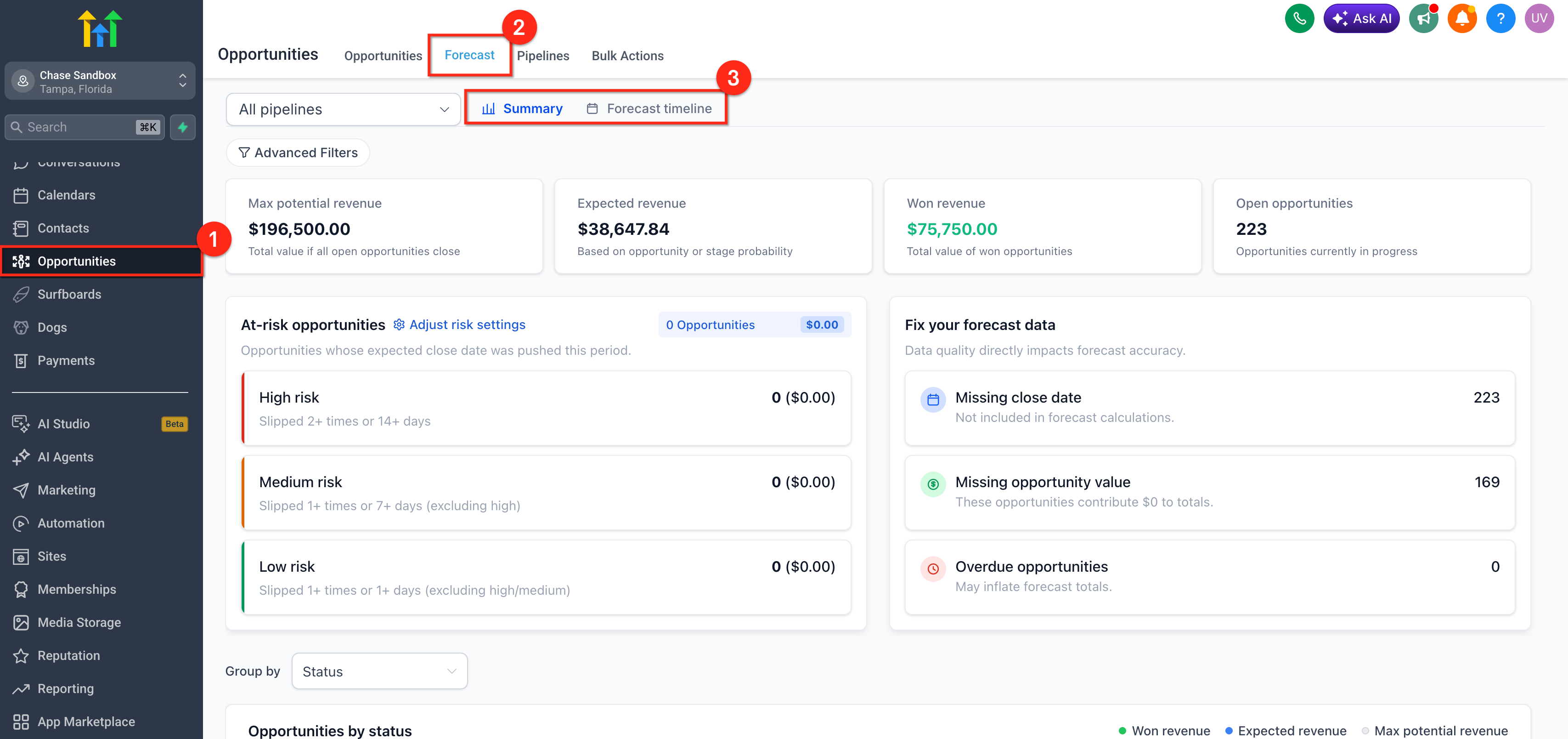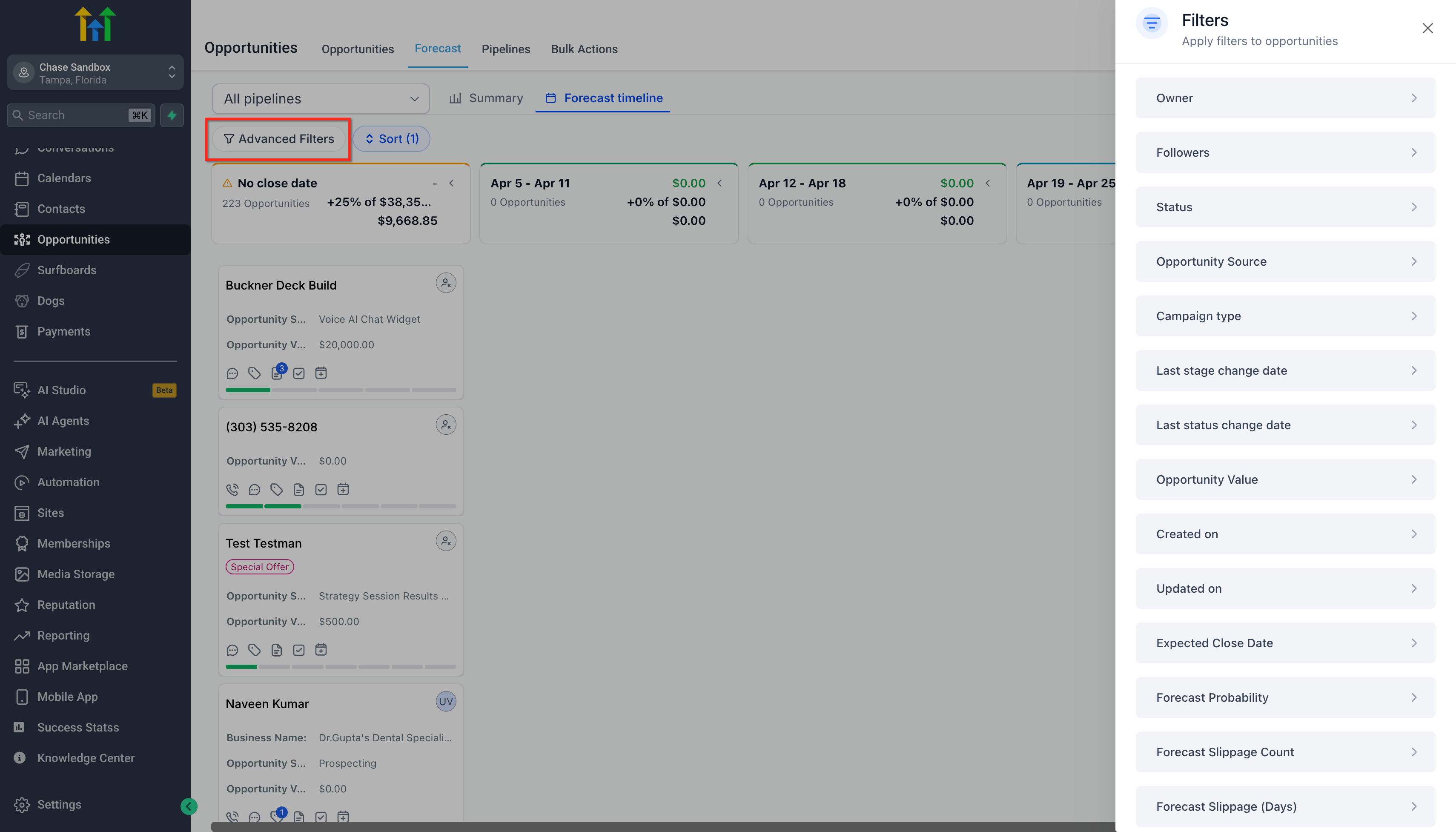 Opportunity Forecasting in HighLevel helps teams move beyond simple pipeline tracking and into more accurate revenue planning. With the Forecast tab inside Opportunities, teams can review expected revenue, monitor deal timing, spot risks, and improve forecast quality using cleaner opportunity data. This feature is designed to give sales teams and managers a more realistic view of what may close and when. It also builds on HighLevel’s existing Opportunities and Pipelines experience, which already supports deal tracking, stage movement, and revenue visibility.