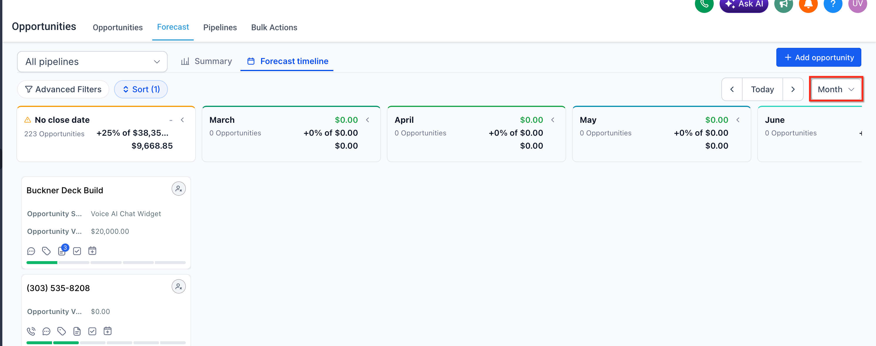 - Forecast Timeline for time-based pipeline tracking