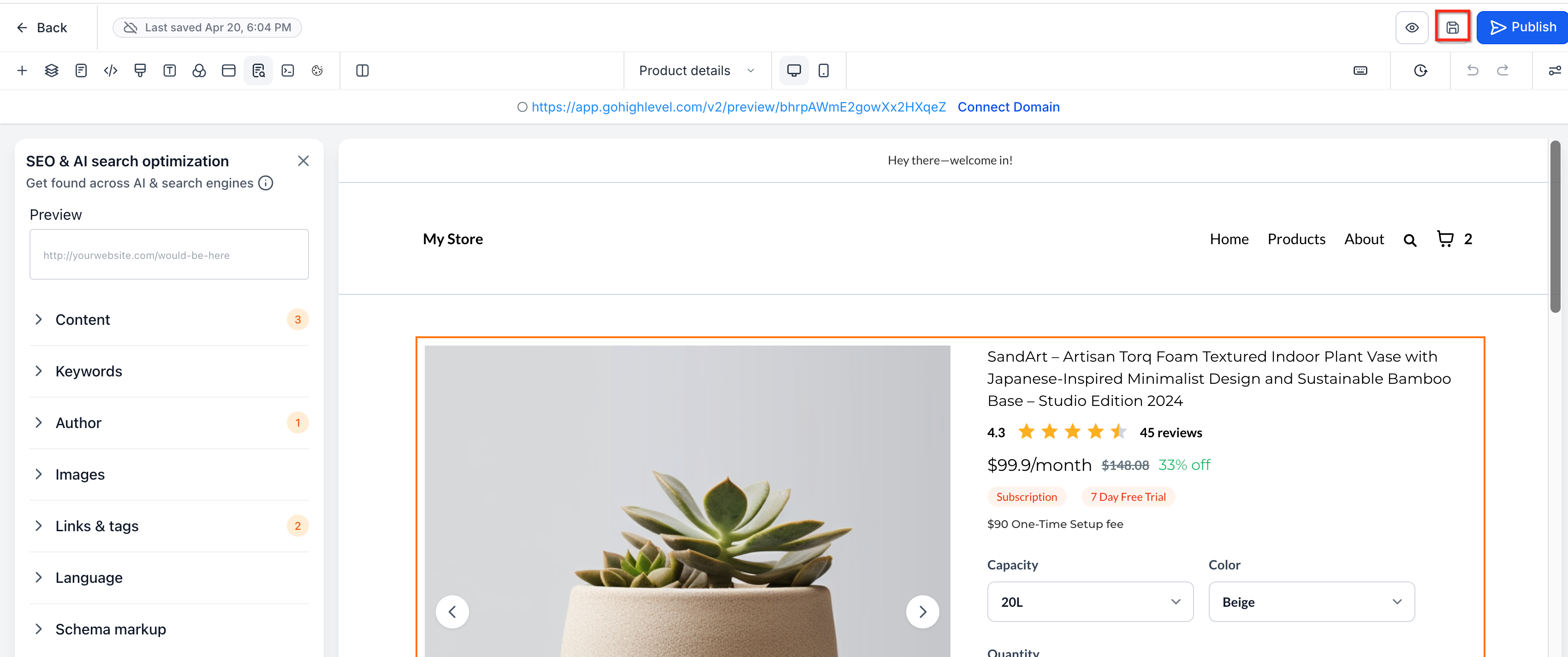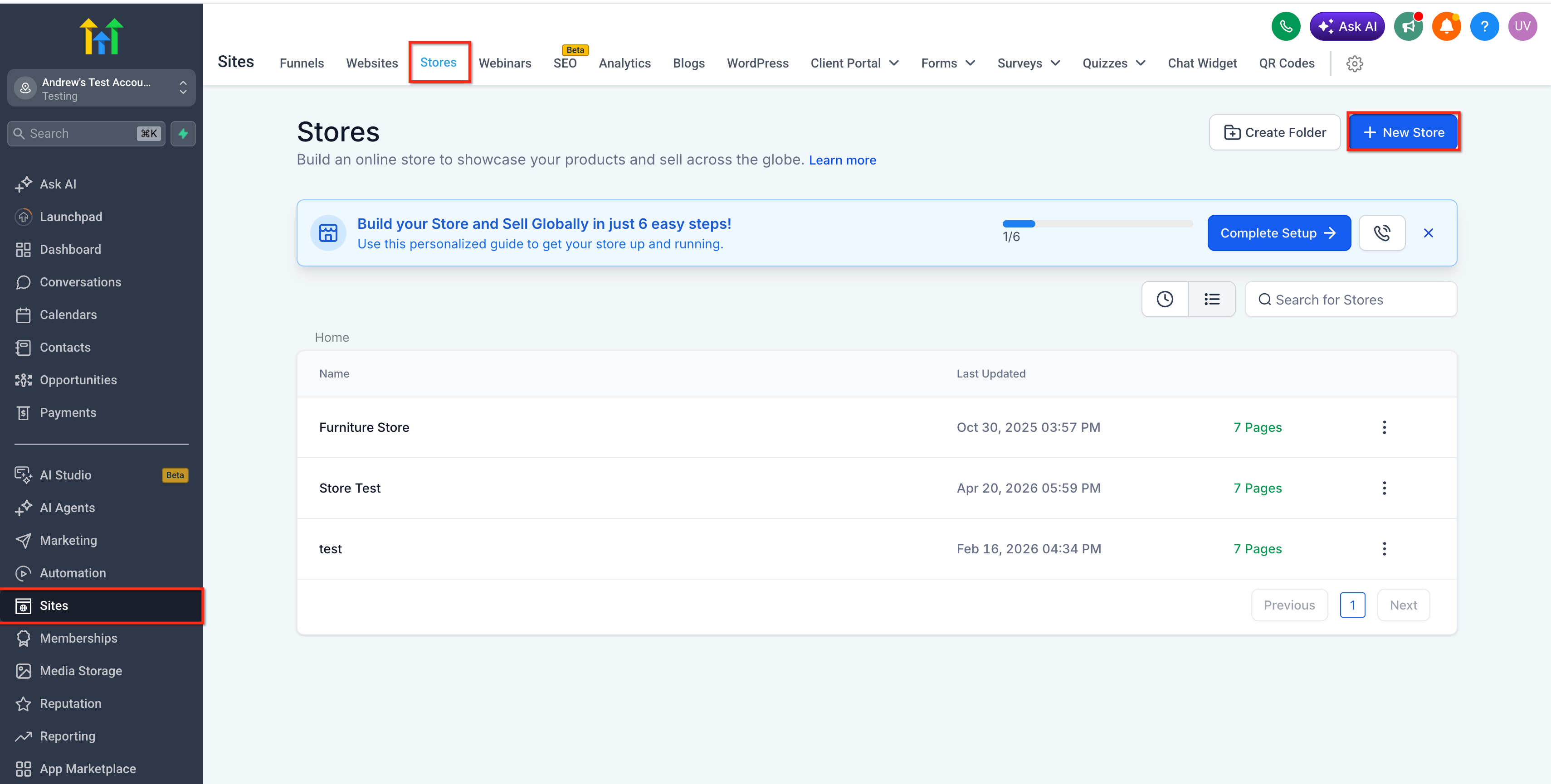 - Open your Store Builder in HighLevel.