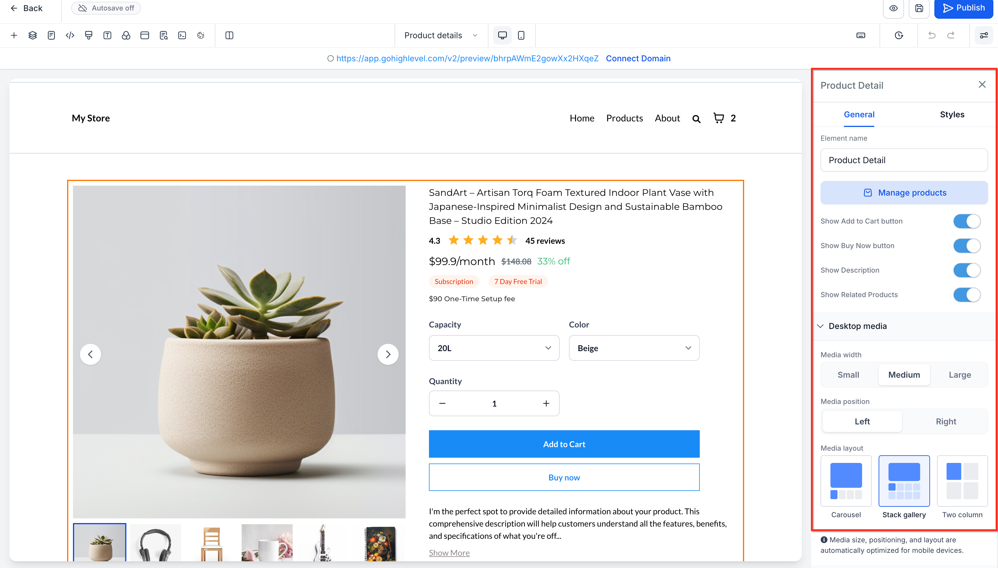 Product Media Layouts for the Product Details Page in HighLevel