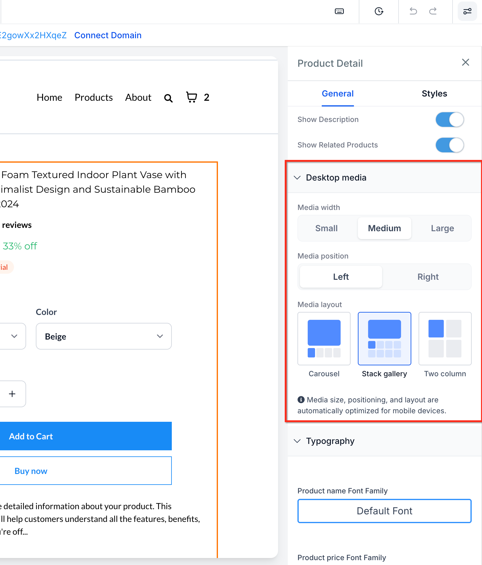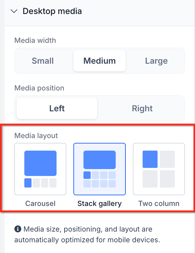 Selecting the right product media layout helps ensure your storefront presents product images clearly across desktop and mobile devices. Proper setup also helps avoid confusion around layout availability, navigation arrows, and mobile behavior.
