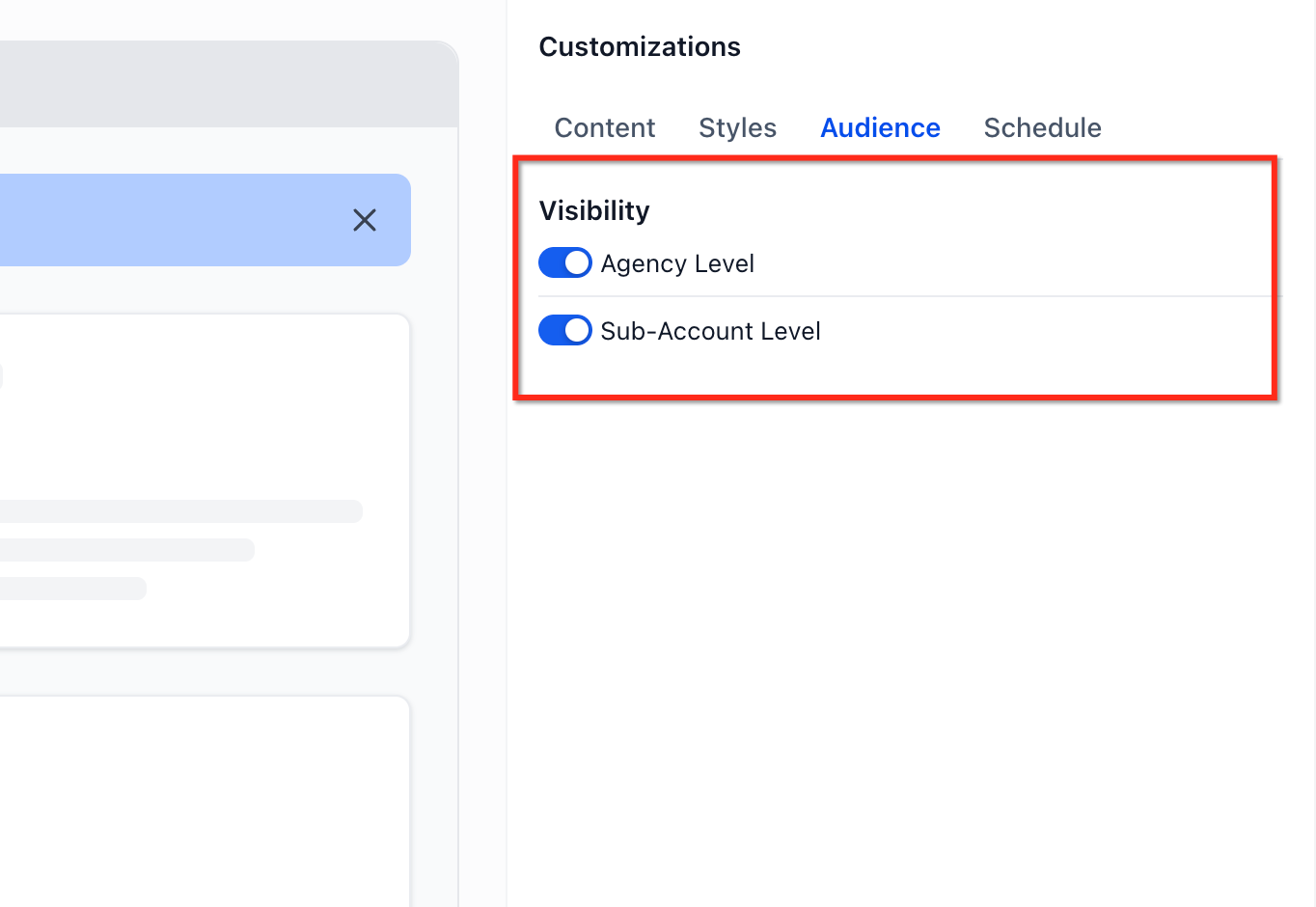 Choosing the right visibility scope helps agencies avoid over-communicating while still keeping the correct users informed. This is especially important when announcements apply only to agency users, only to sub-accounts, or to both experiences.
