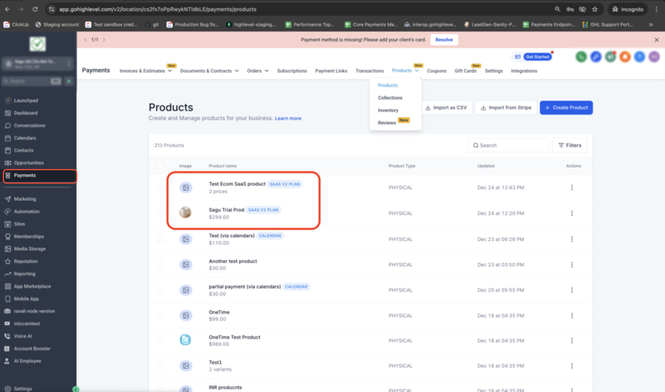 Payments → Products