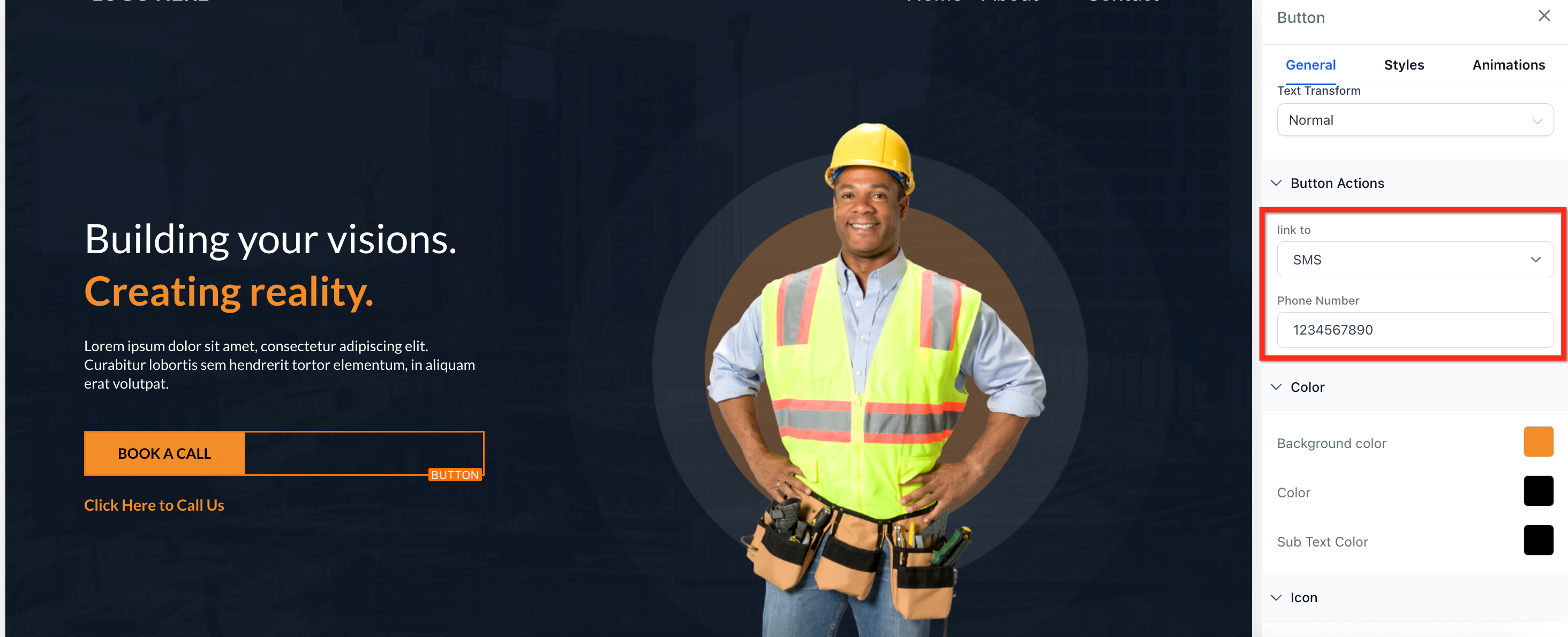 - On the right side under Button Actions, use the Link to dropdown to select Call
